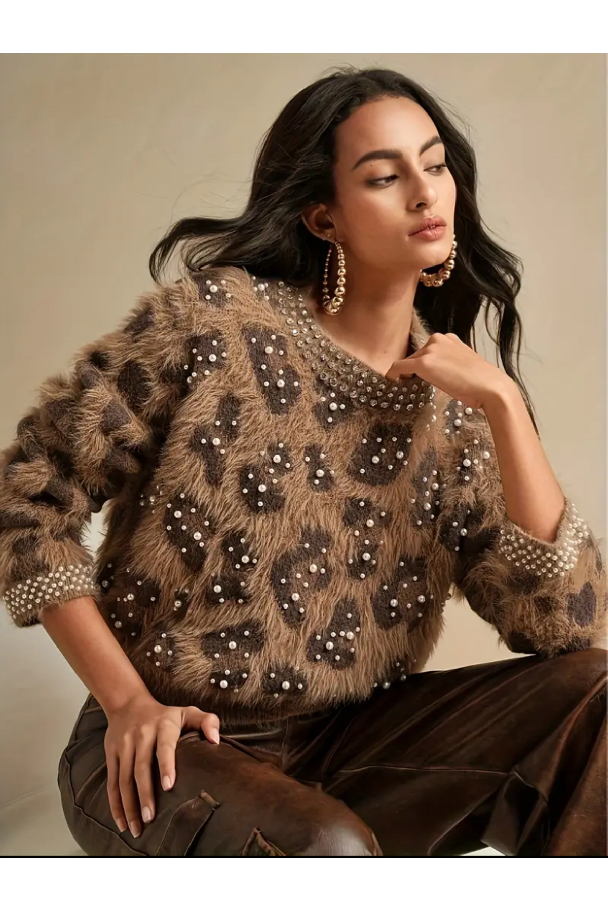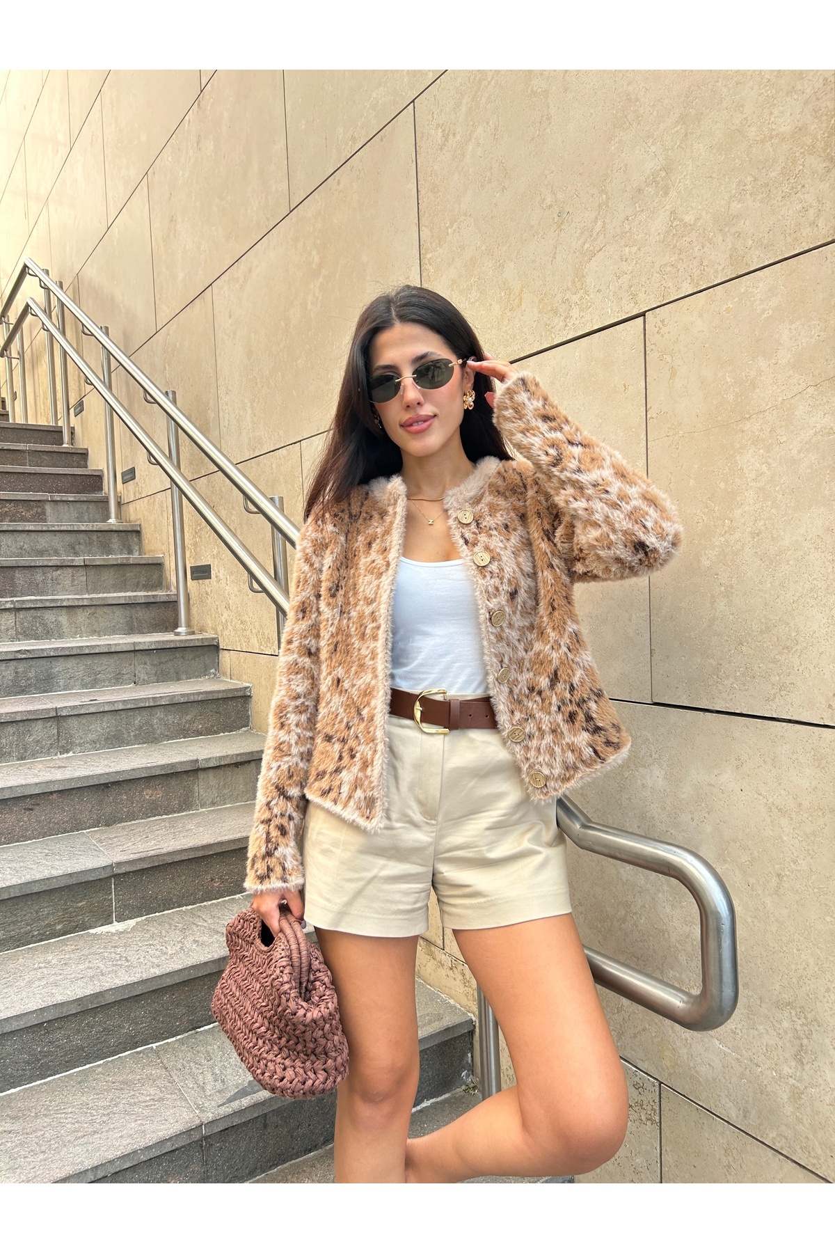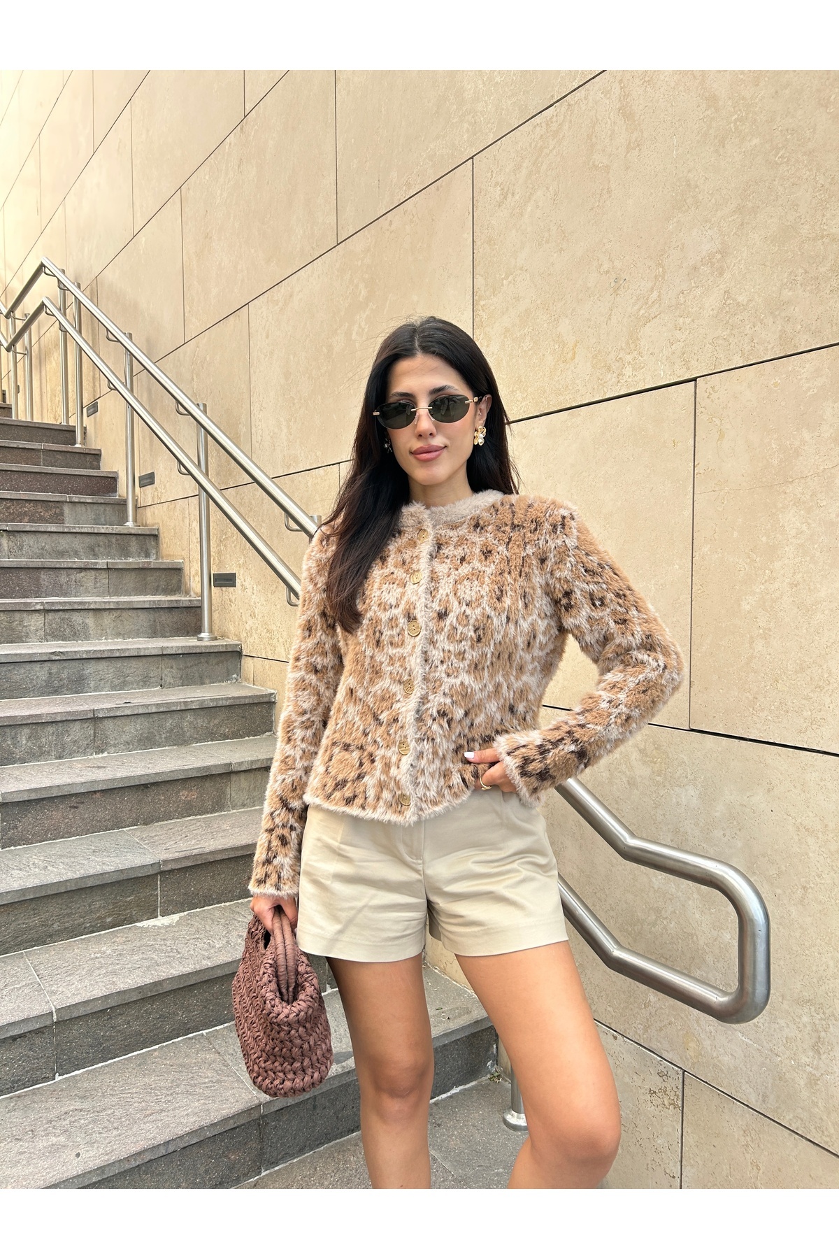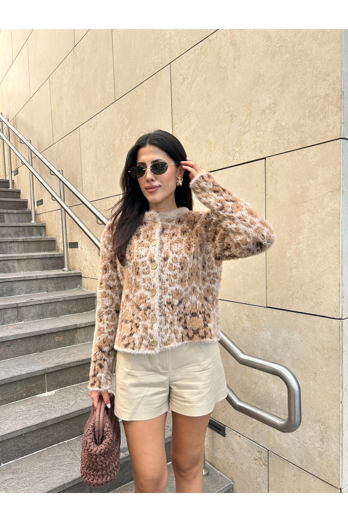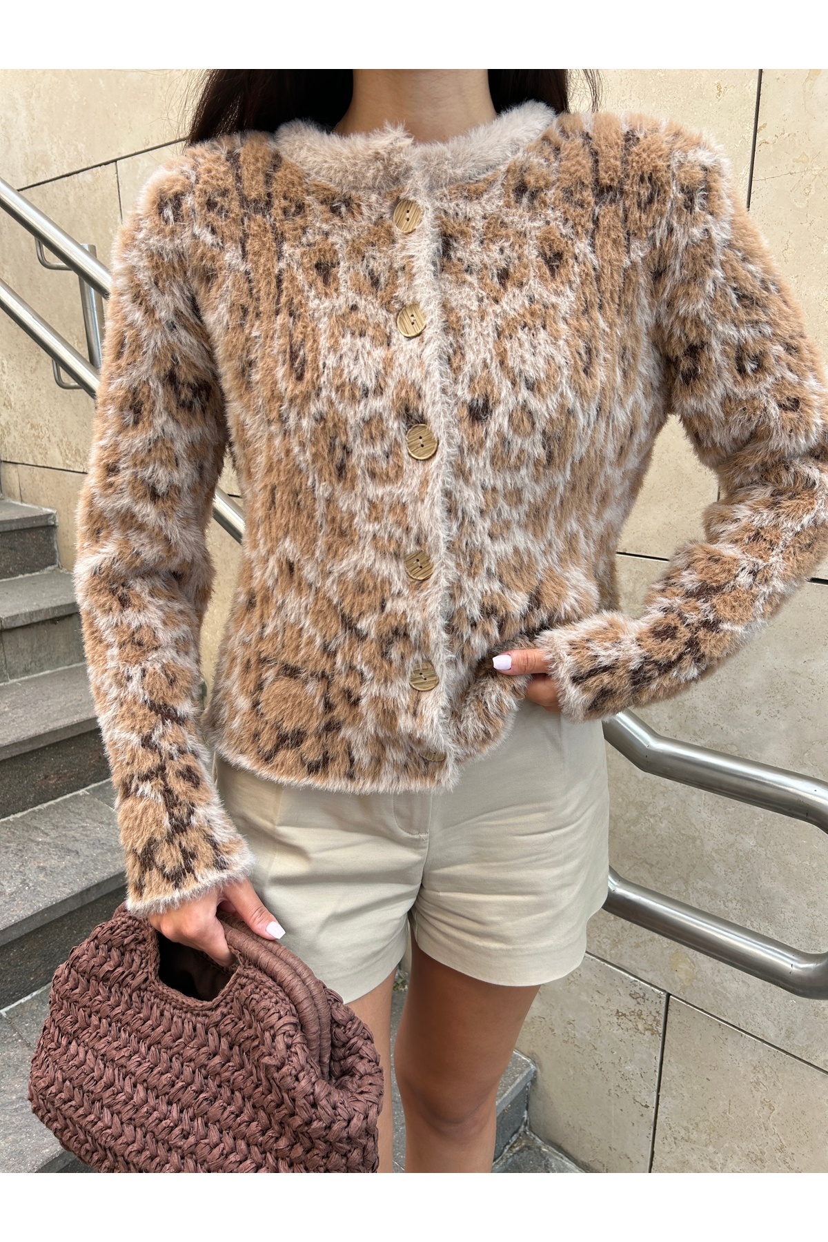 HRK0005 Kadın Suni Kürk İplikli Leopar Desenli Düğmeli Triko Hırka HRK0005 Kadın Suni Kürk İplikli Leopar Desenli Düğmeli Triko Hırka Pu-HRK0005 XL