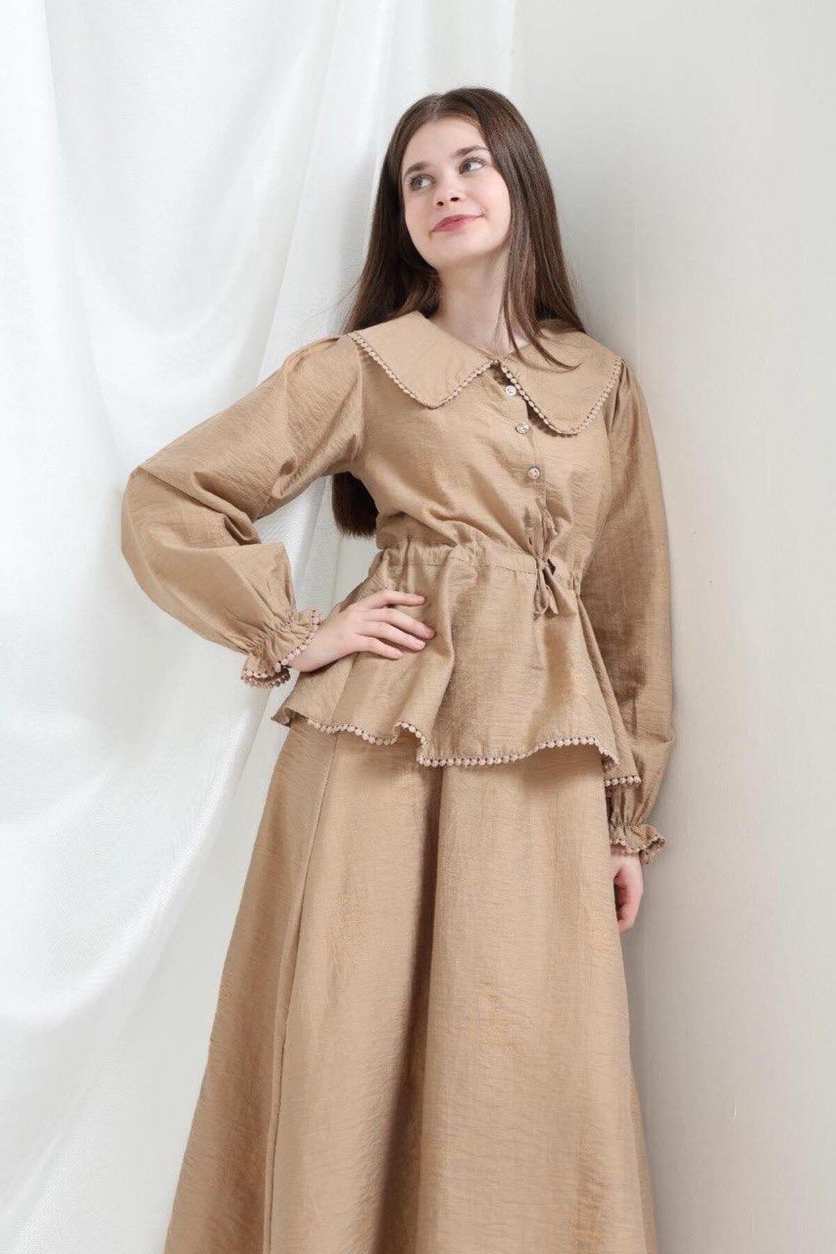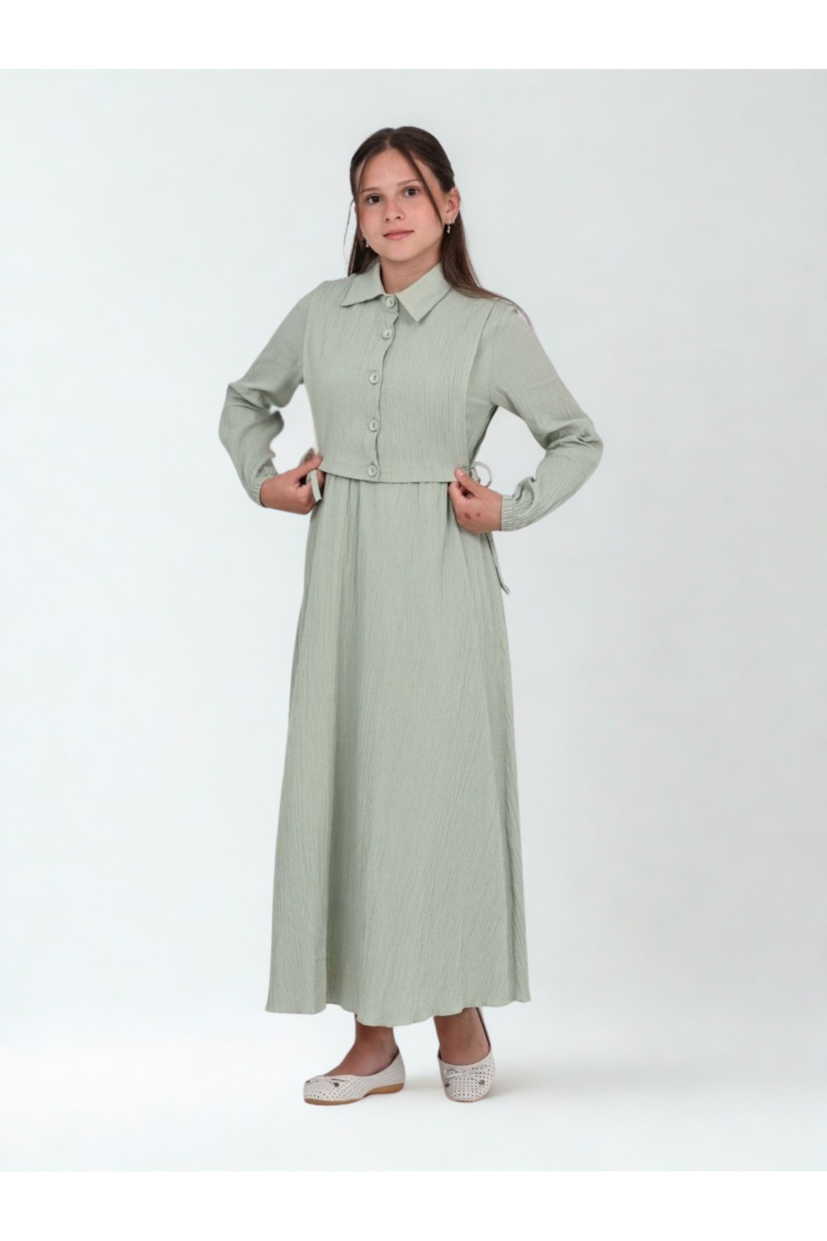 Jakarlı Krep Pamuk Elbise Bej Jakarlı Krep Pamuk Elbise Bej 00277 15-16 Yaş