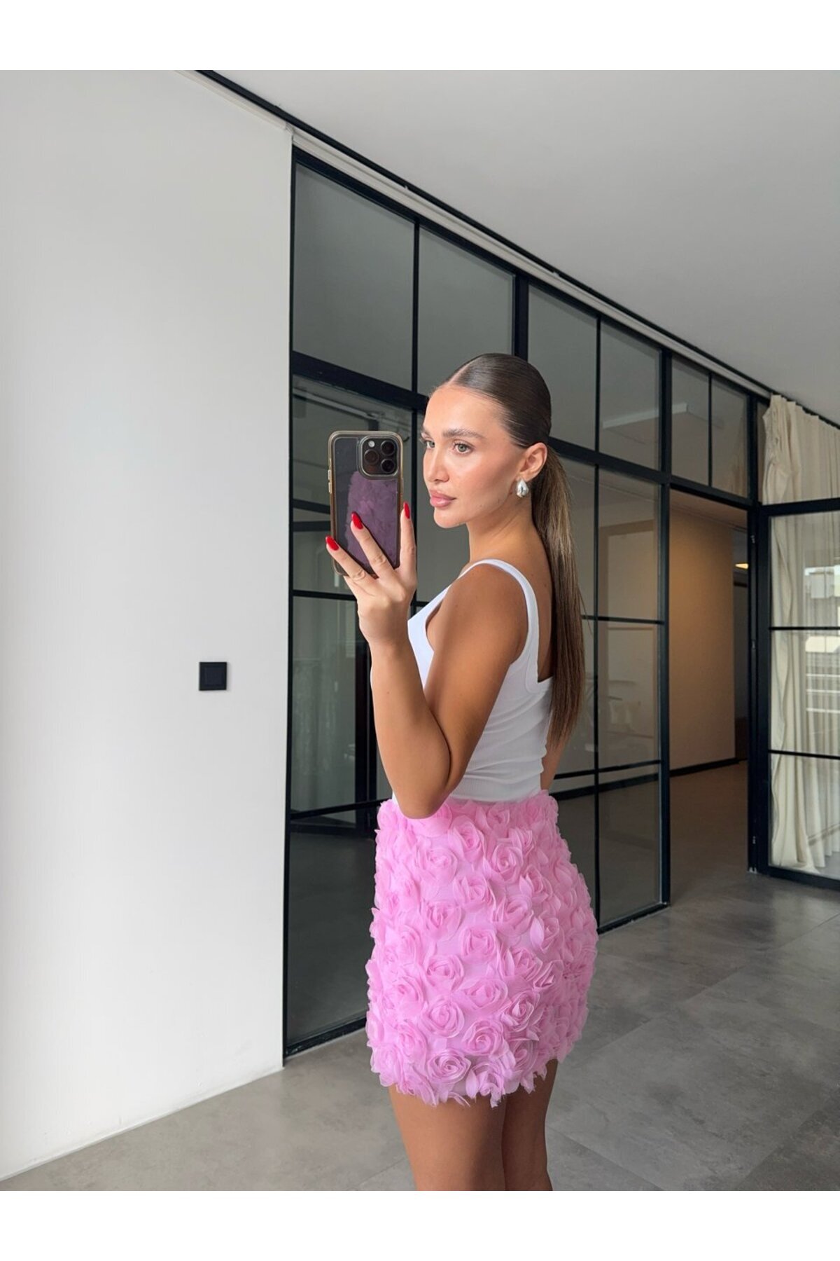 KABARTMA GÜL DETAYLI PEMBE MİNİ ETEK KABARTMA GÜL DETAYLI PEMBE MİNİ ETEK Y2680000009607 L