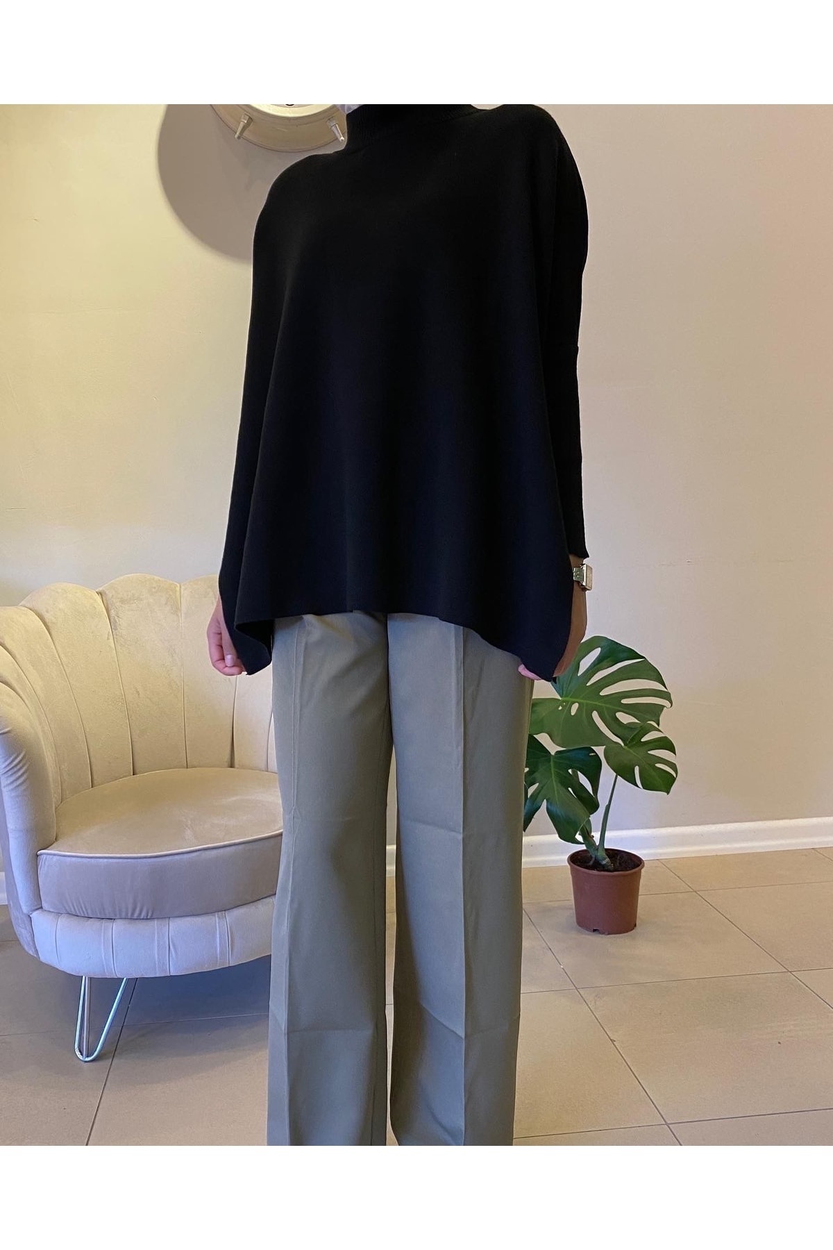 Siyah Bisiklet Yaka Baklava Desen Kadın Kazak Mg2471 Siyah Bisiklet Yaka Baklava Desen Kadın Kazak Mg2471 MG2471 L