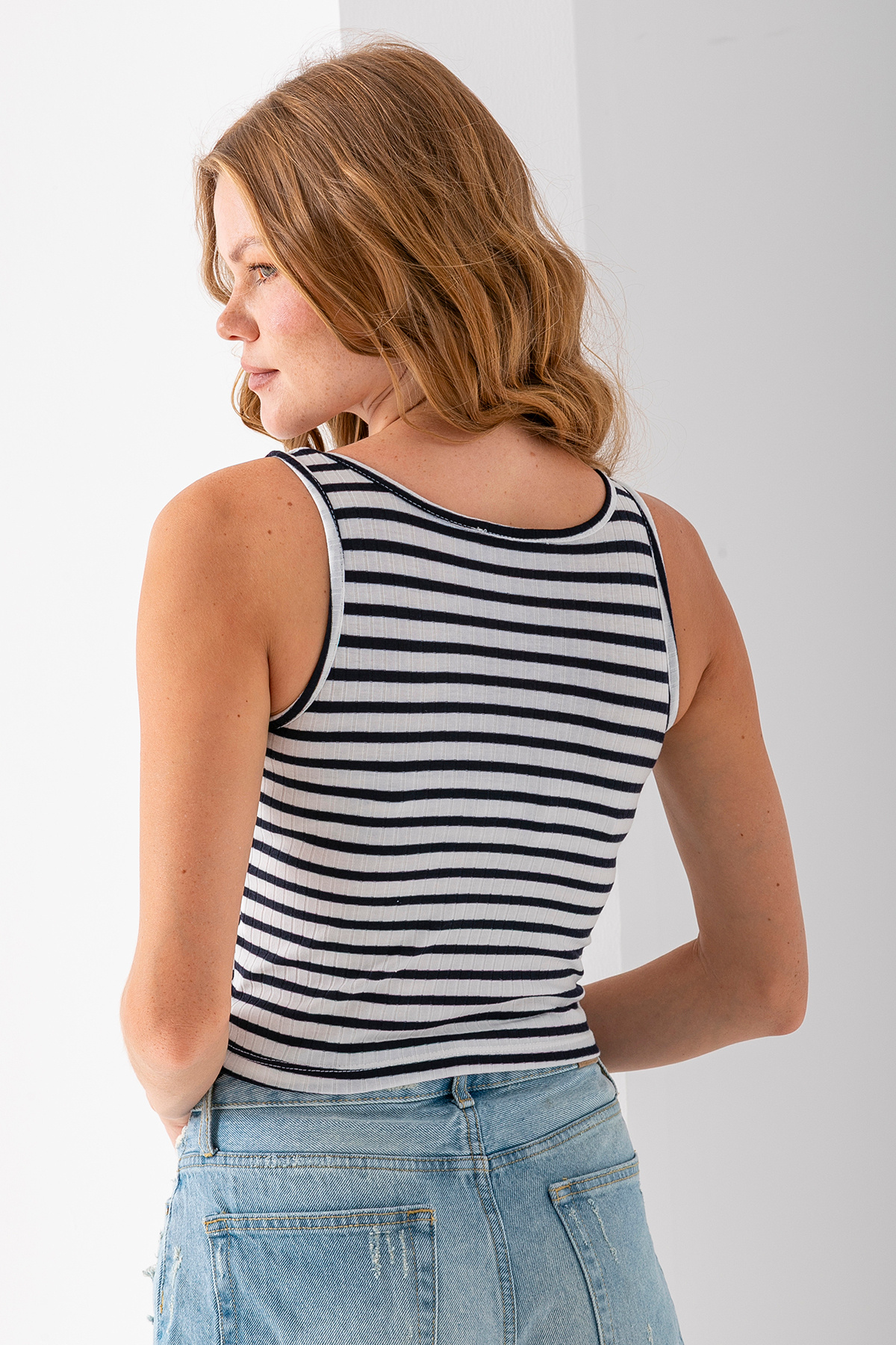 Kadın Askılı U Yaka Çizgili Basic Atlet Lacivert - 25603 Kadın Askılı U Yaka Çizgili Basic Atlet Lacivert - 25603 910-25603 XL