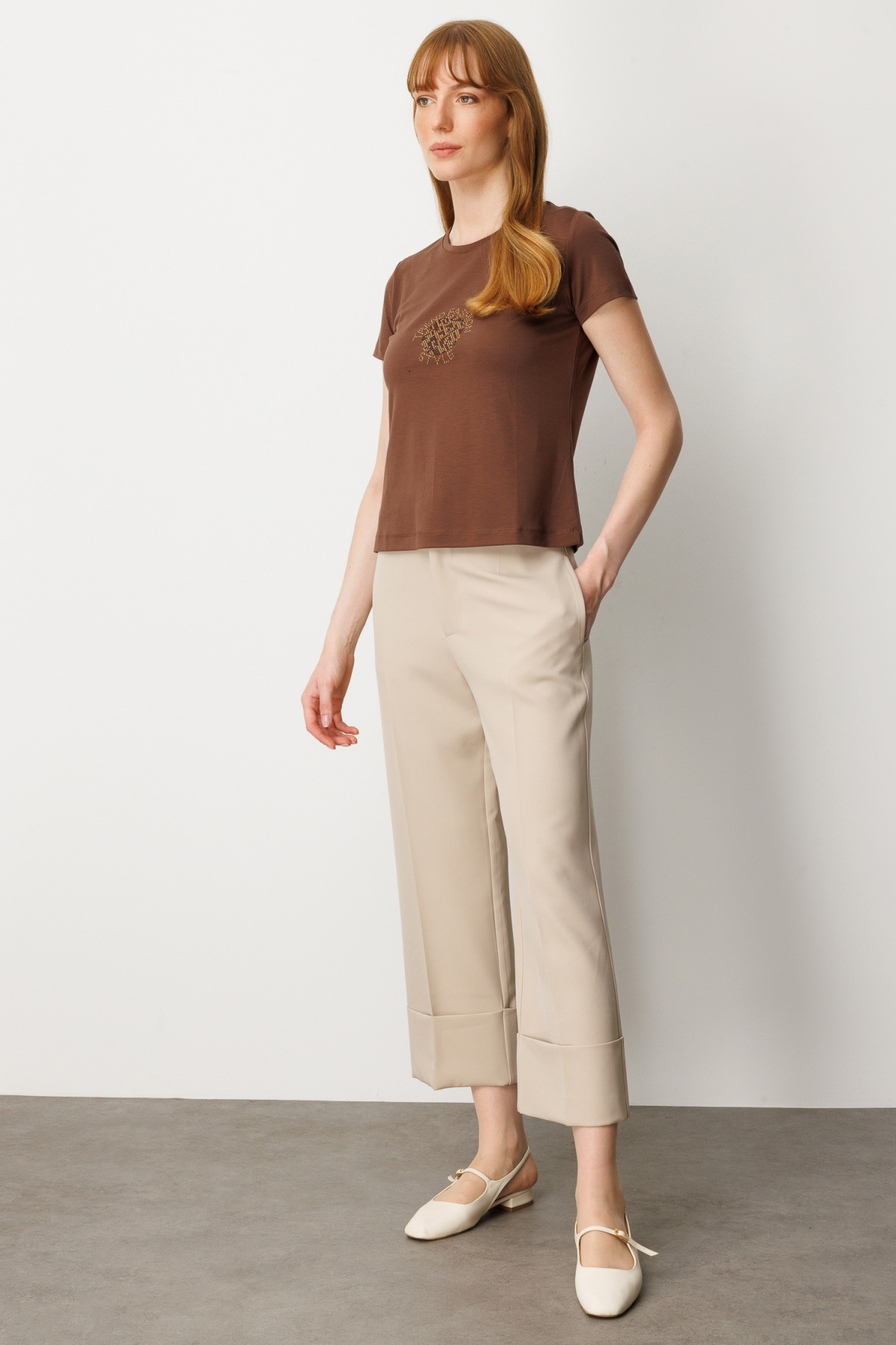 Önü Taş Baskılı Kısa Kollu Bluz Önü Taş Baskılı Kısa Kollu Bluz 26K.ON.BLZ.61330.01 XL