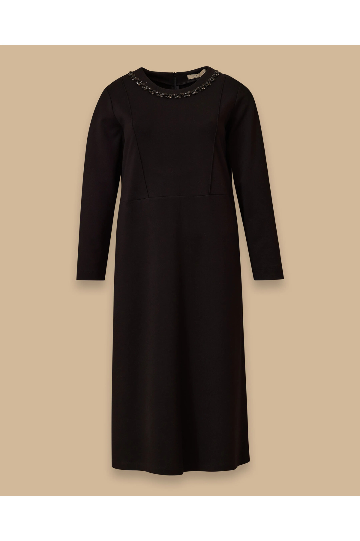 Büyük Beden Taşlı Yaka Detaylı Elbise Büyük Beden Taşlı Yaka Detaylı Elbise 10002521314002 50