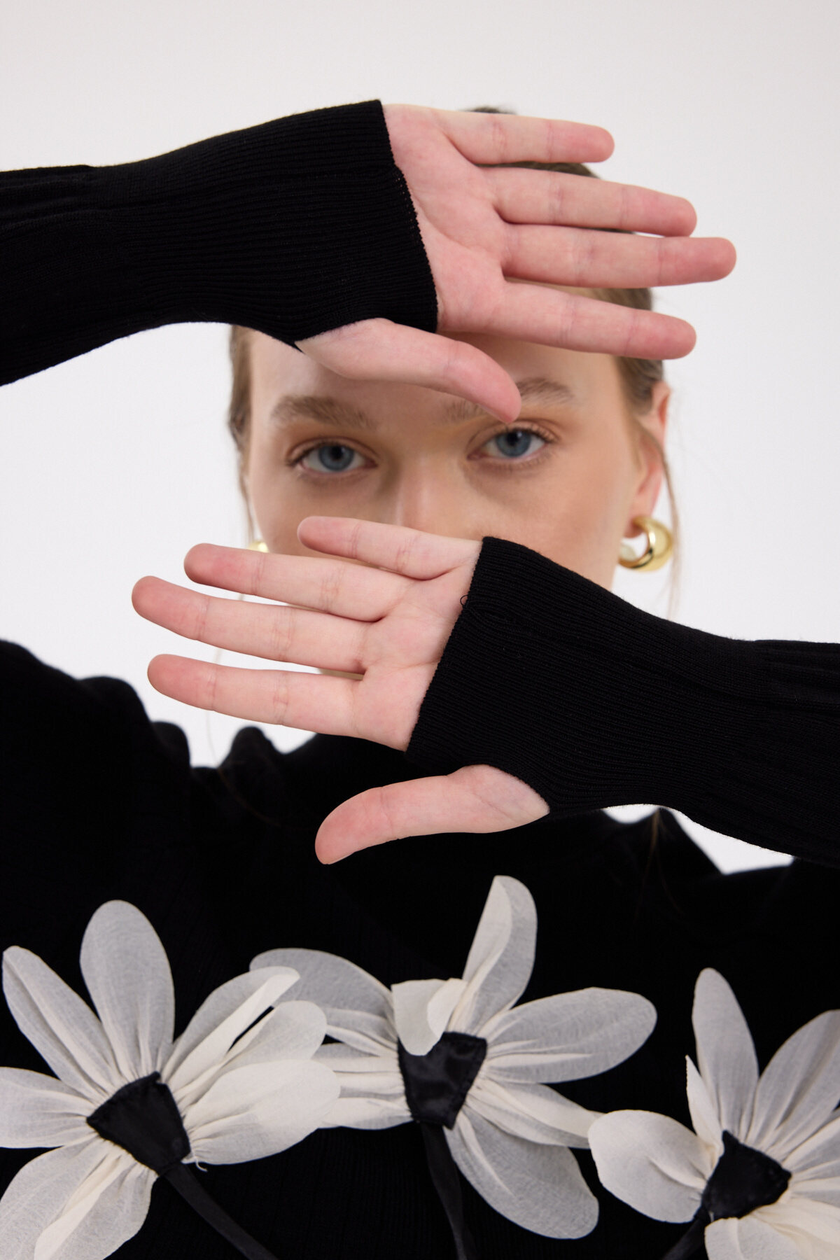 Siyah Çiçek Detaylı Triko Alt Üst Kadın Takım 7075 Siyah Çiçek Detaylı Triko Alt Üst Kadın Takım 7075 26K1123TKM005 تک سایز