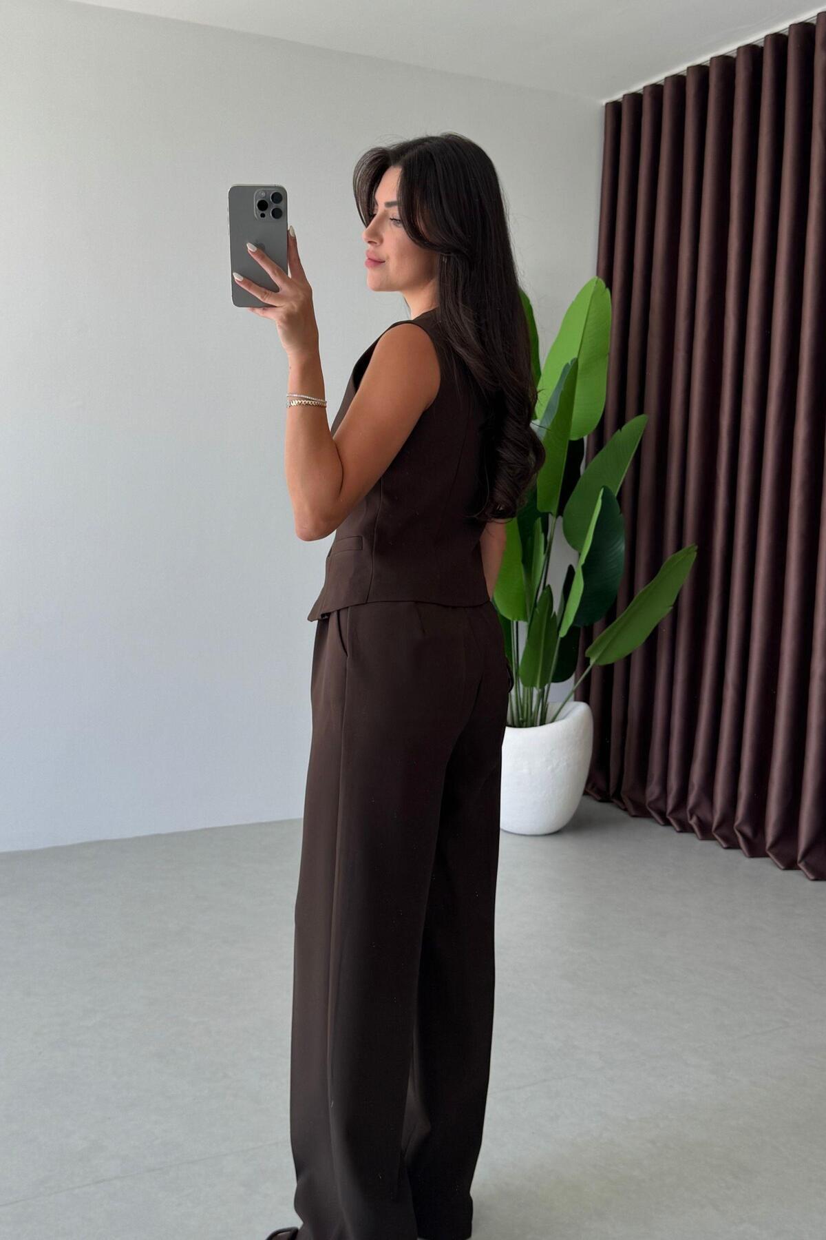 Lola Kahve Düğme Detay Krep Kumaş Takım Lola Kahve Düğme Detay Krep Kumaş Takım 25078768 XL