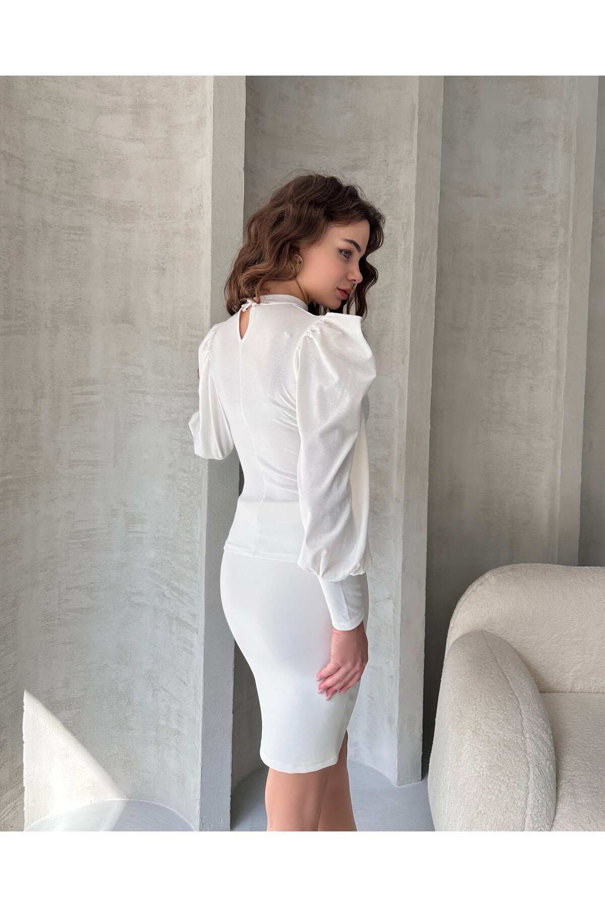 Öpücük Yaka Prenses Kol Crep Bluz Öpücük Yaka Prenses Kol Crep Bluz 1111 L/2XL