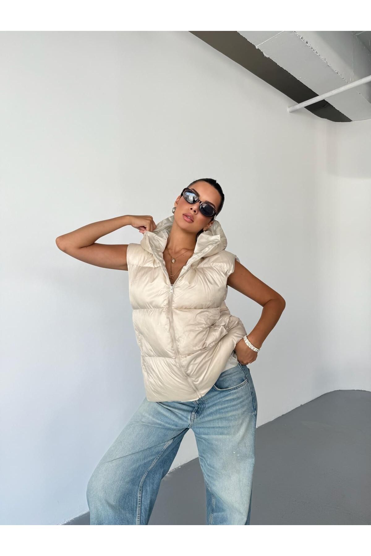 Yeni Sezon Oversize Bej Şişme Yelek Yeni Sezon Oversize Bej Şişme Yelek Quasar-Yelek-1 XL