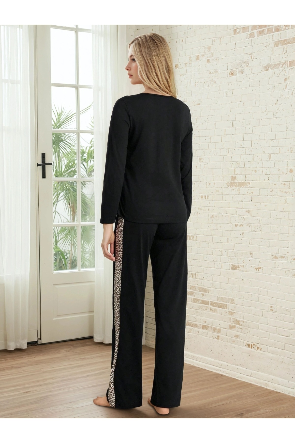 Siyah Leopar Detaylı Uzun Kollu Pijama Takım Siyah Leopar Detaylı Uzun Kollu Pijama Takım crlpjm1027 XL