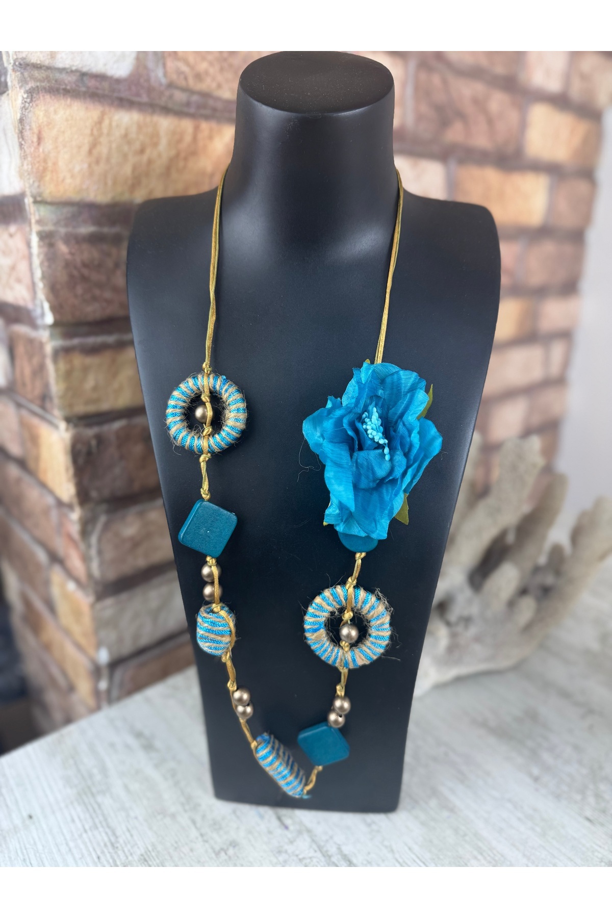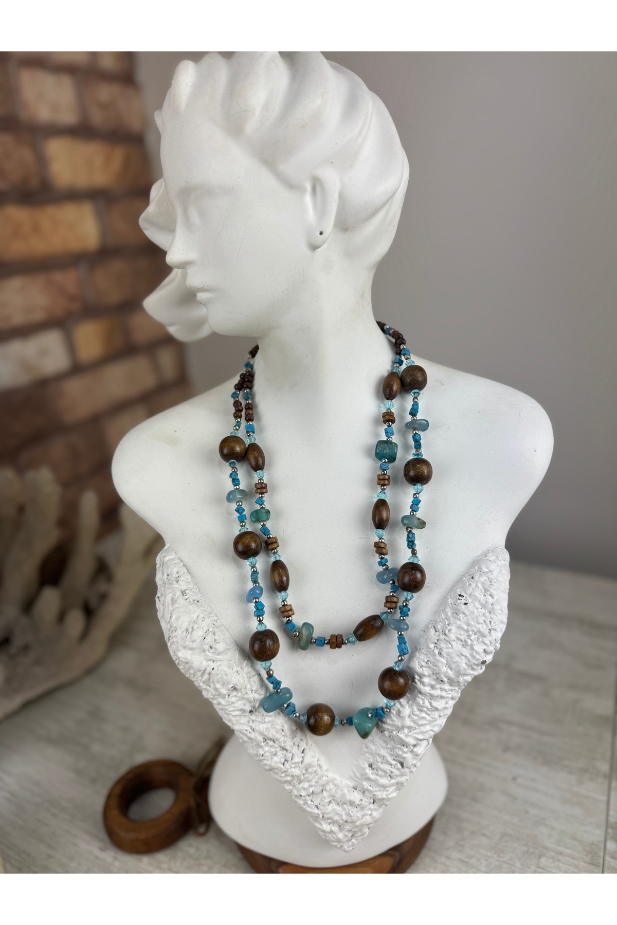 Ahşap boncuklu turkuaz akik taşlı kolye Ahşap boncuklu turkuaz akik taşlı kolye inci31 M