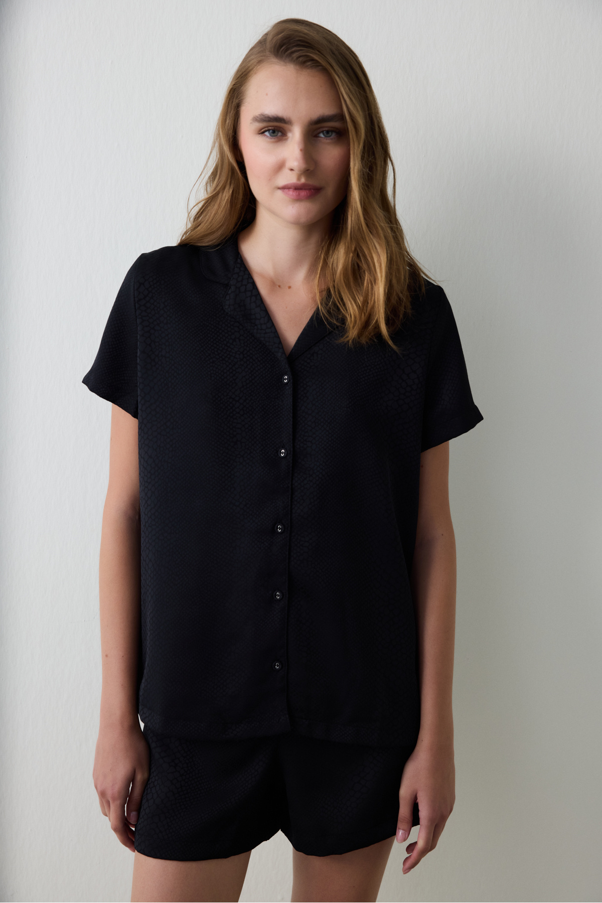 Siyah Fleur Saten V Yaka Ayarlanabilir Askılı Pijama Üstü Siyah Fleur Saten V Yaka Ayarlanabilir Askılı Pijama Üstü PN2INH8D25SK-BK3 XL