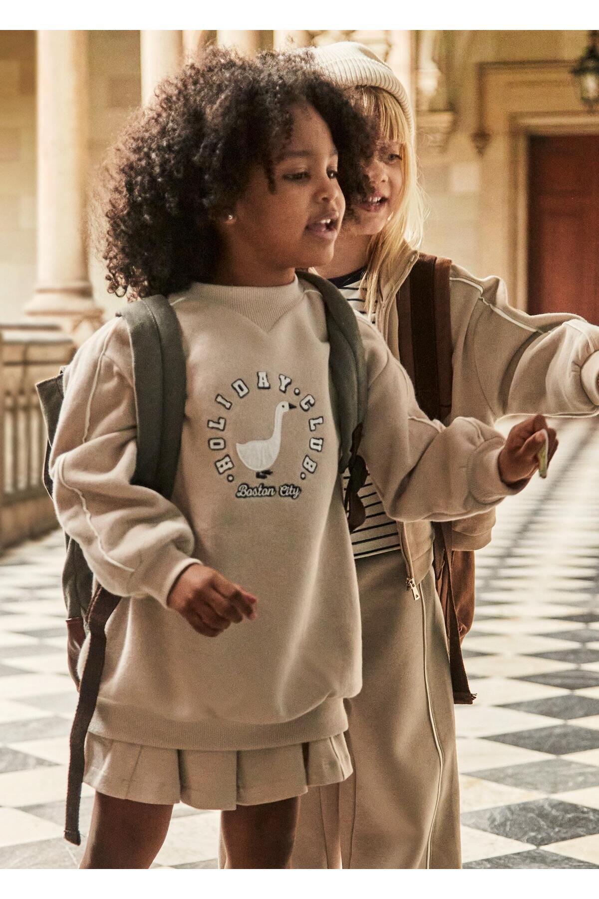 Kız Çocuk Ayı Baskılı Kapüşonlu Sweatshirt Elbise - Bej Kız Çocuk Ayı Baskılı Kapüşonlu Sweatshirt Elbise - Bej 4928 10 Yaş