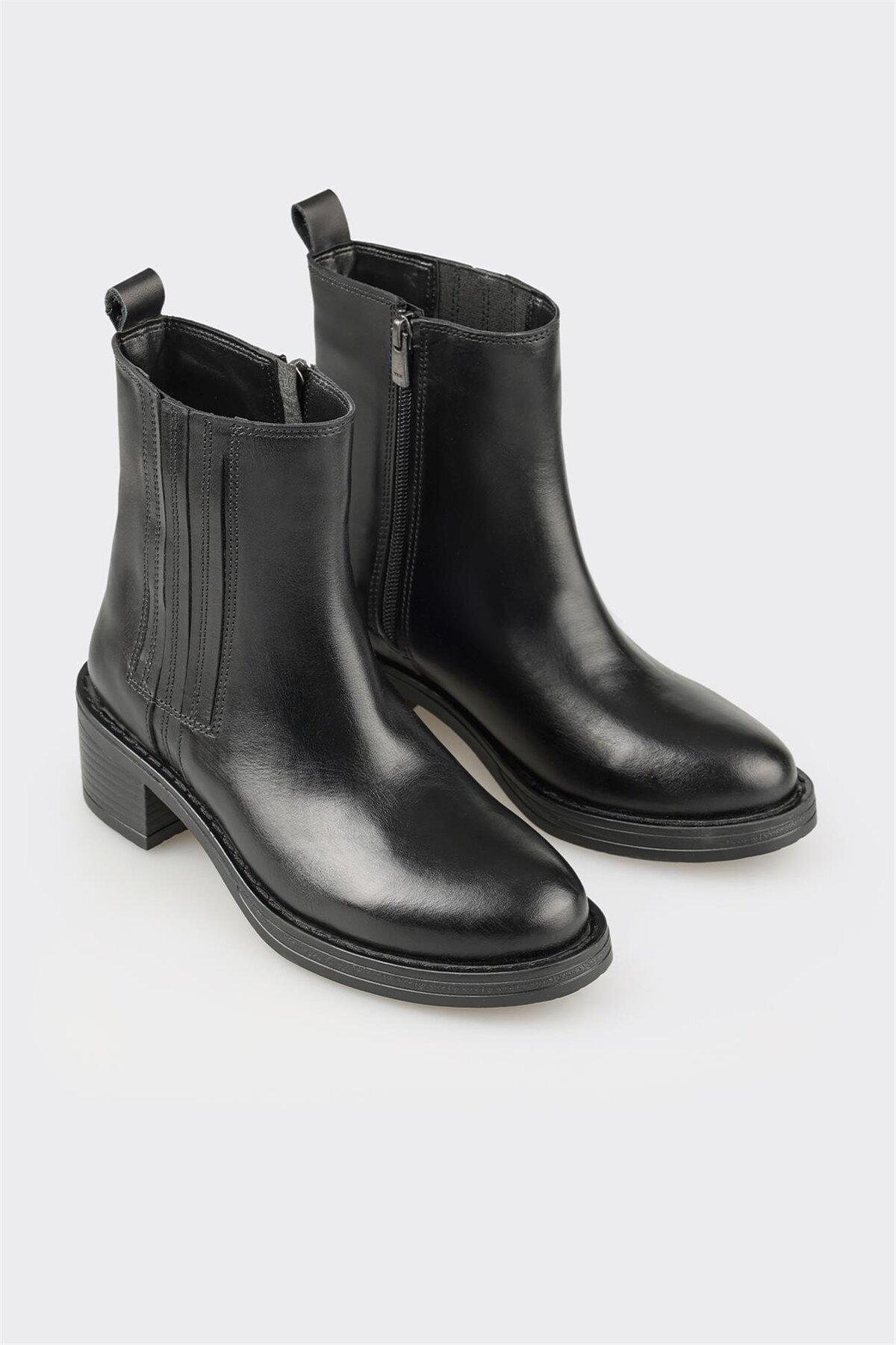 Siyah Deri Kadın Topuklu Bot Siyah Deri Kadın Topuklu Bot DELMORE-2 40