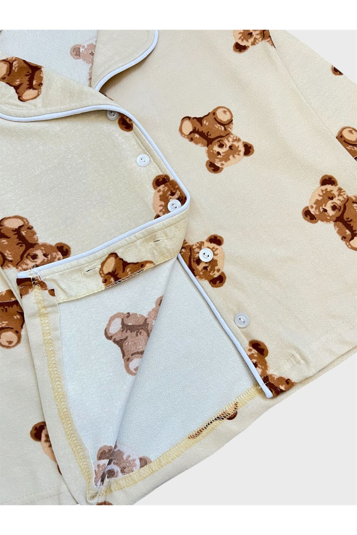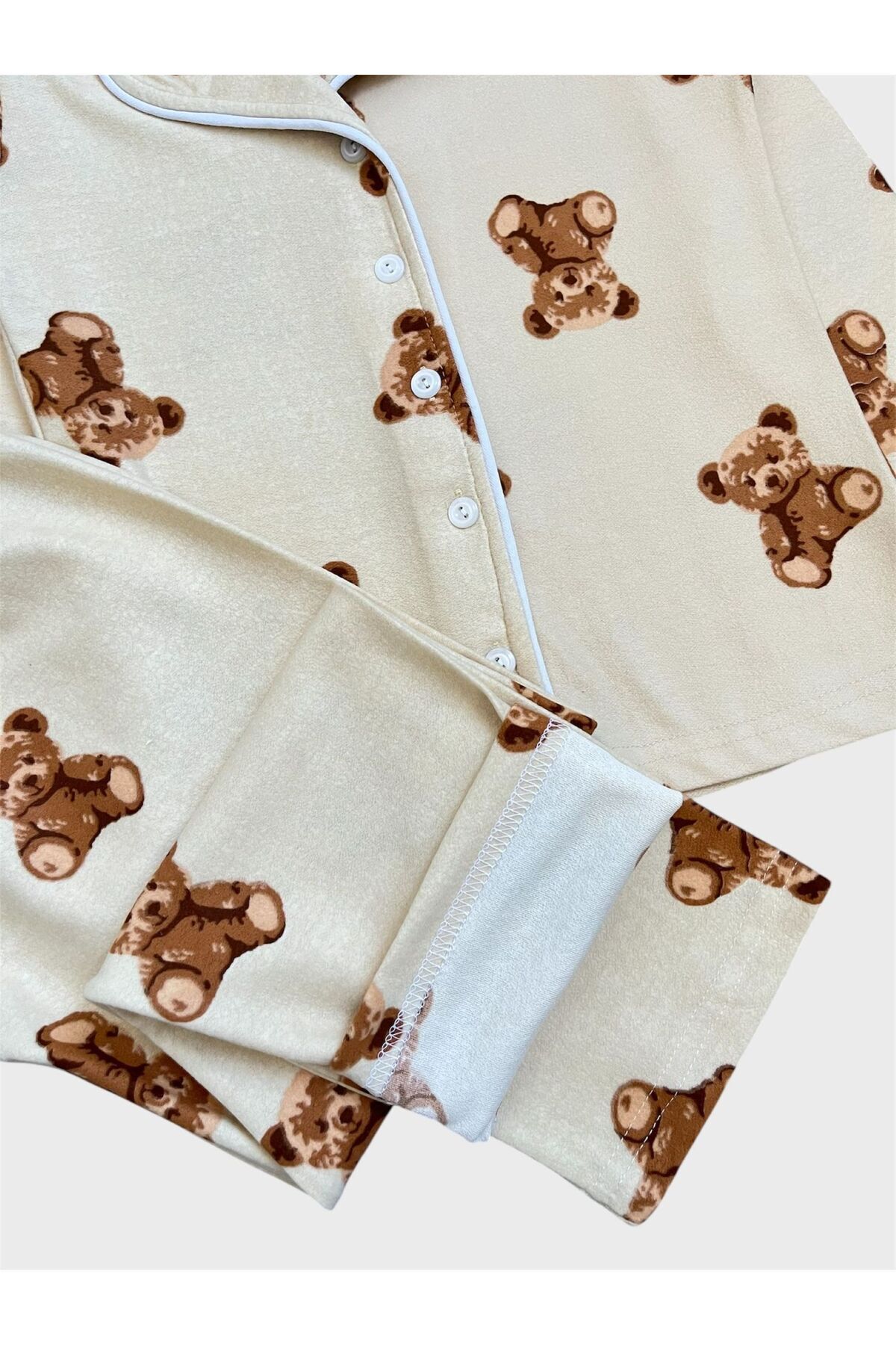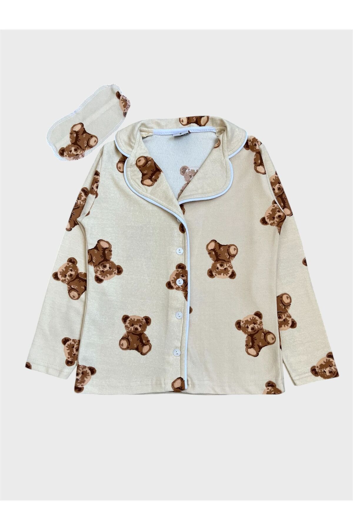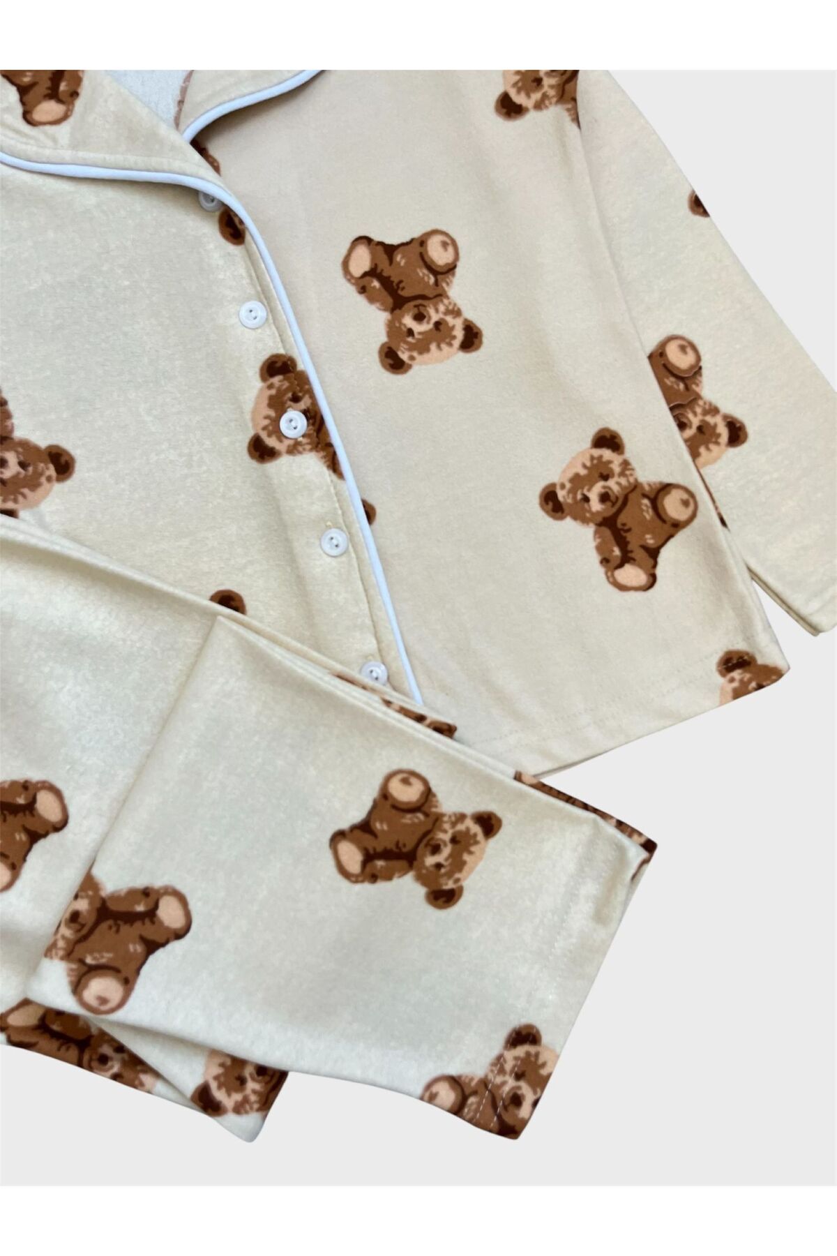 Kız Çocuk Pamuklu Kumaş Süet Bej Ayıcık Desenli Uyku Bantlı Biyeli Gömlek Yaka Pijama Takımı Kız Çocuk Pamuklu Kumaş Süet Bej Ayıcık Desenli Uyku Bantlı Biyeli Gömlek Yaka Pijama Takımı Alısayckkız 13 Yaş