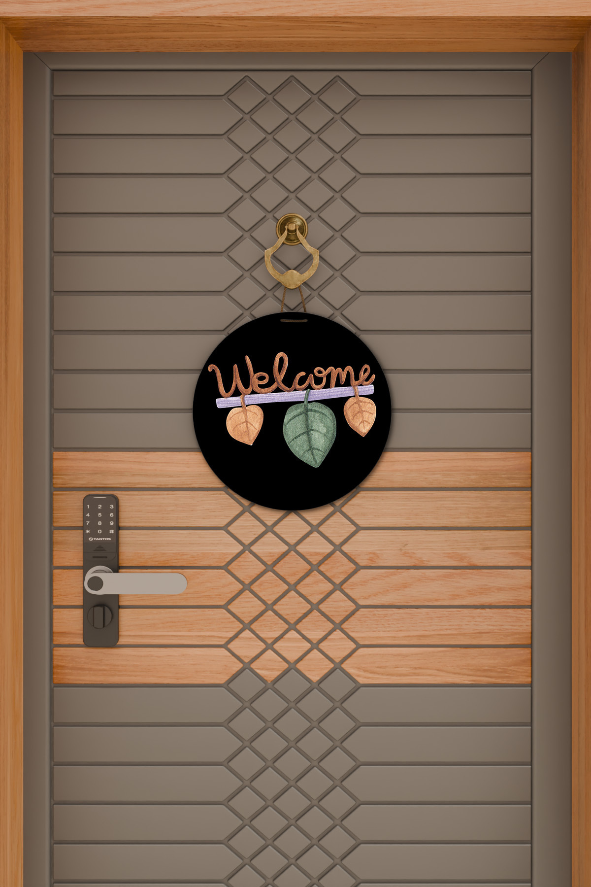 Modern Kapı Süsü Siyah Zemin alt Yaprak Welcome Dış Mekan Kapı Süsü Modern Kapı Süsü Siyah Zemin alt Yaprak Welcome Dış Mekan Kapı Süsü DKS218 تک سایز