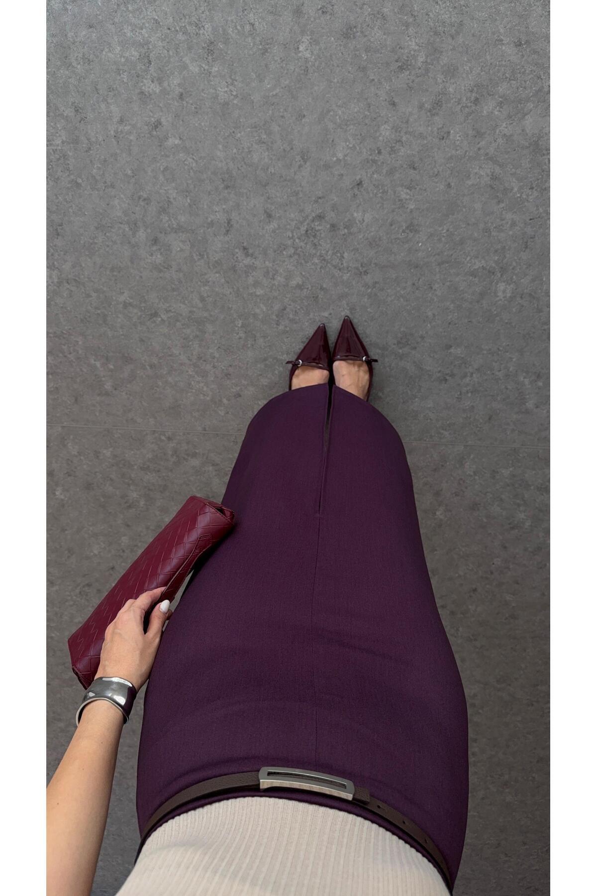 Kemerli Mürdüm Etek Kemerli Mürdüm Etek 11869 XL