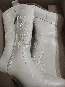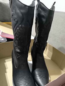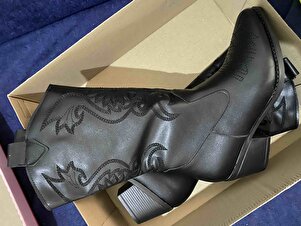 Kadın Siyah Deri Özel Nakış Fermuar Detaylı Kovboy Çizme Kadın Siyah Deri Özel Nakış Fermuar Detaylı Kovboy Çizme DDM 40