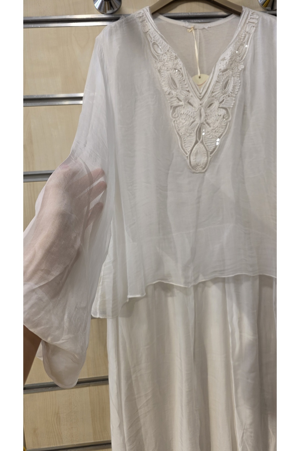 İtalyan İpek Elbise Pul Detaylı Dantelli İtalyan İpek Elbise Pul Detaylı Dantelli SN780 Pullu Dantelli V Yaka İpek Elbise Standart