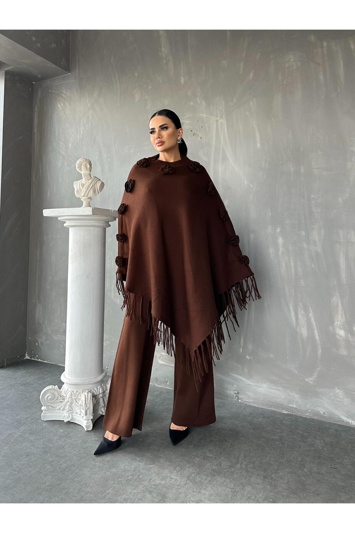 KADIN TAKMA ÇİÇEK DETAYLI PANÇO TAKIM KADIN TAKMA ÇİÇEK DETAYLI PANÇO TAKIM 2016 Standart