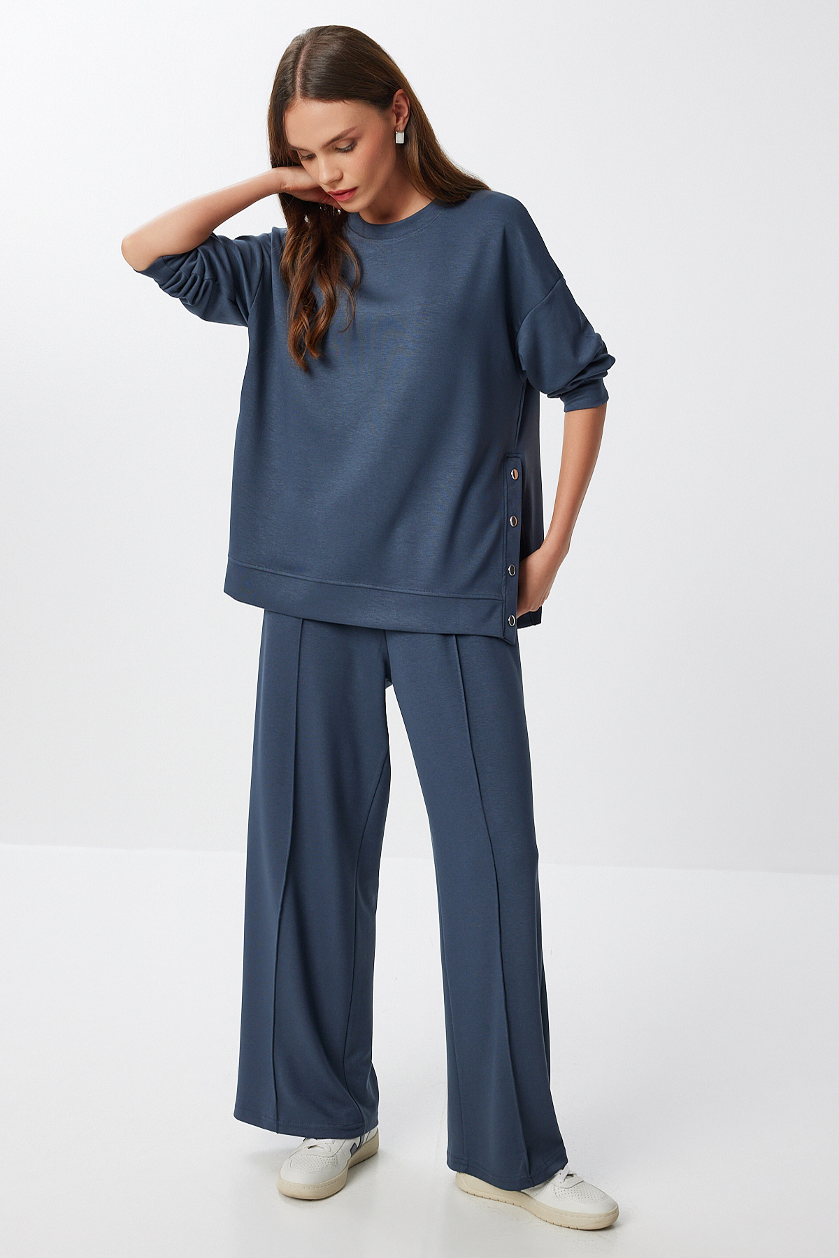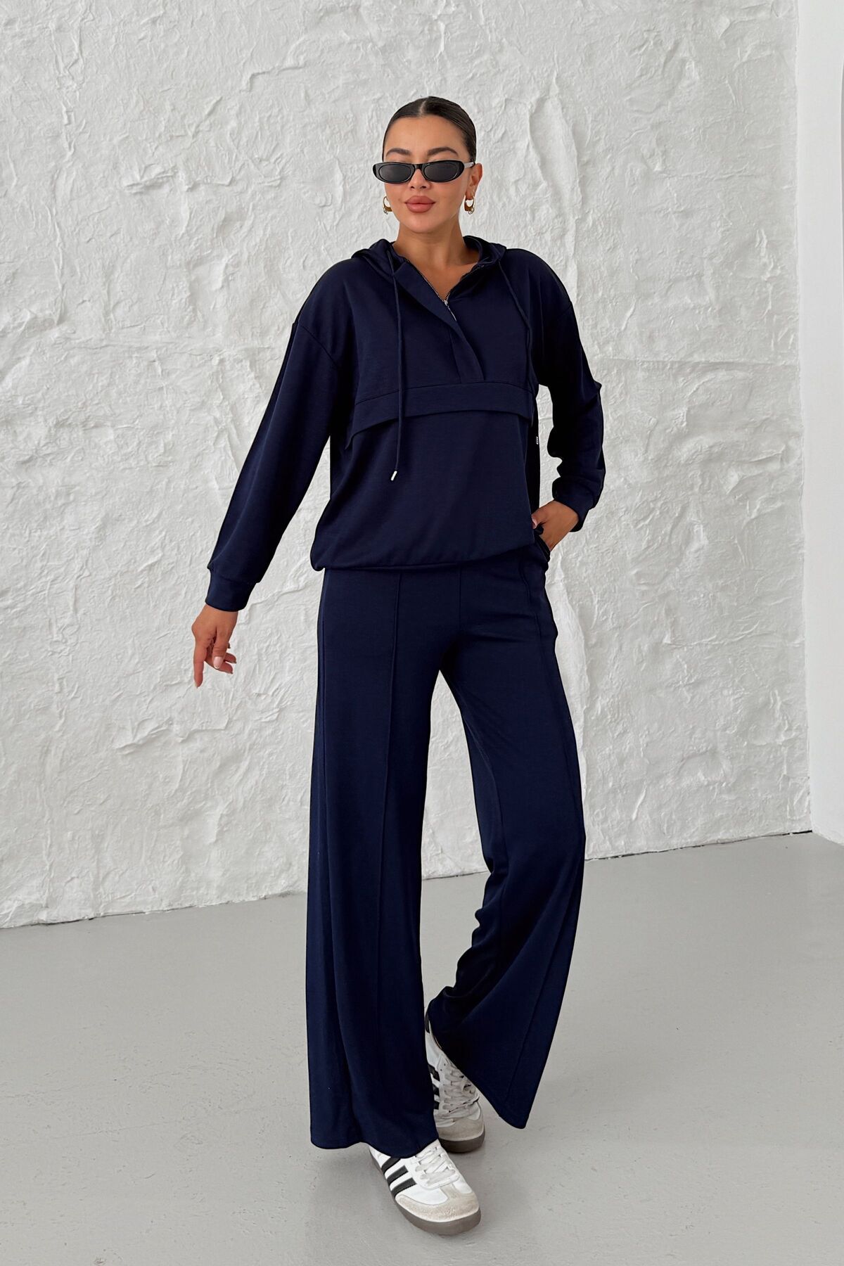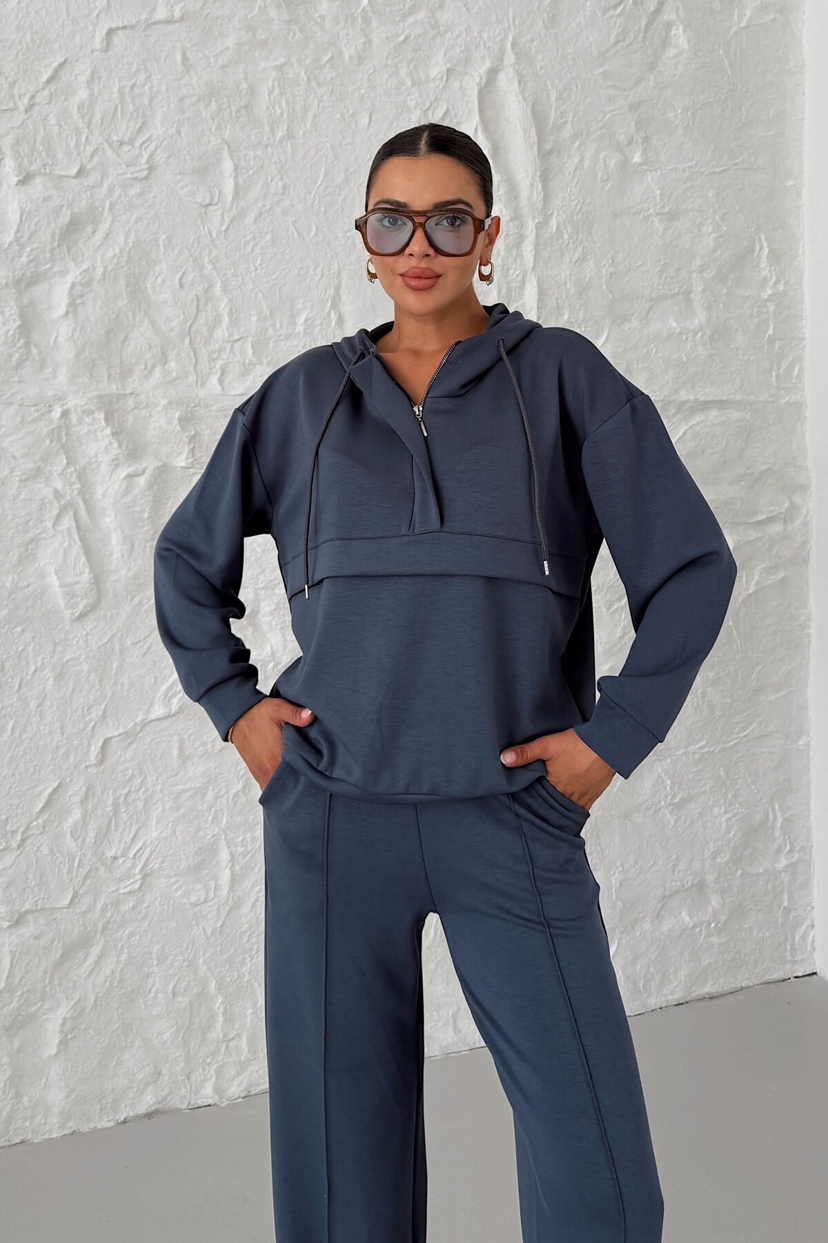 Kadın Füme Kapüşonlu Biye Detaylı Yarım Fermuarlı Kanguru Cepli Modal Kumaş Alt-Üst Takım Kadın Füme Kapüşonlu Biye Detaylı Yarım Fermuarlı Kanguru Cepli Modal Kumaş Alt-Üst Takım KN-VYAKAKangCep XL