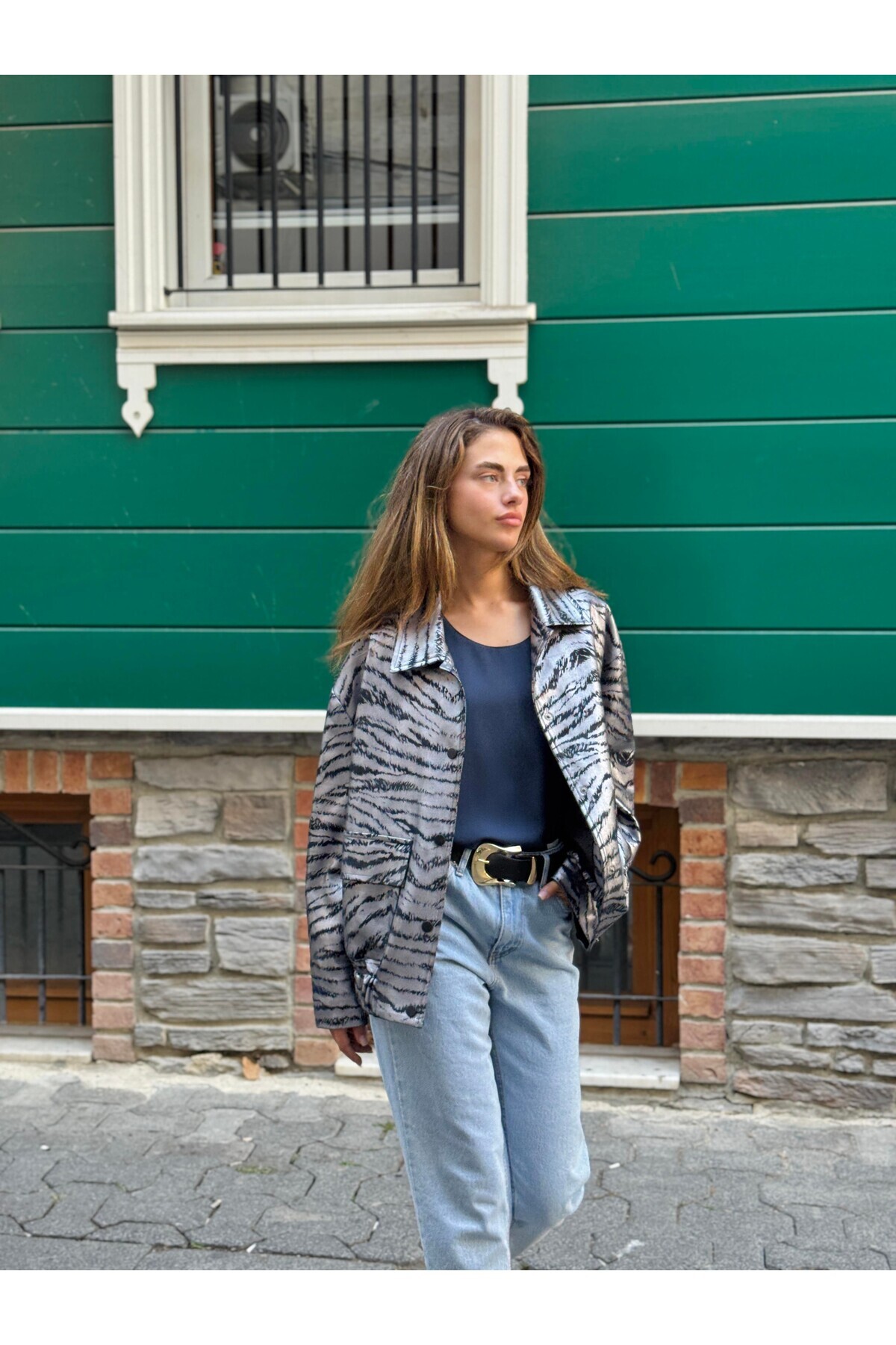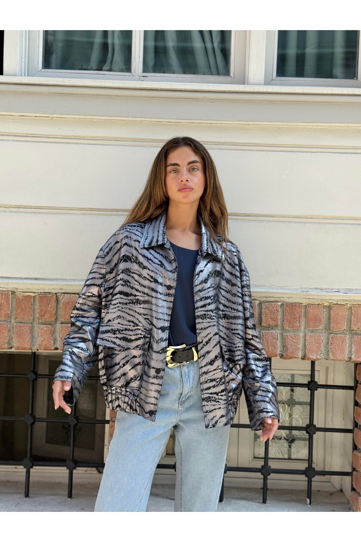 Tasarım Brooklyn Bomber Ceket Kadın Gümüş Renkli Tasarım Brooklyn Bomber Ceket Kadın Gümüş Renkli RBKCKT112 L/XL