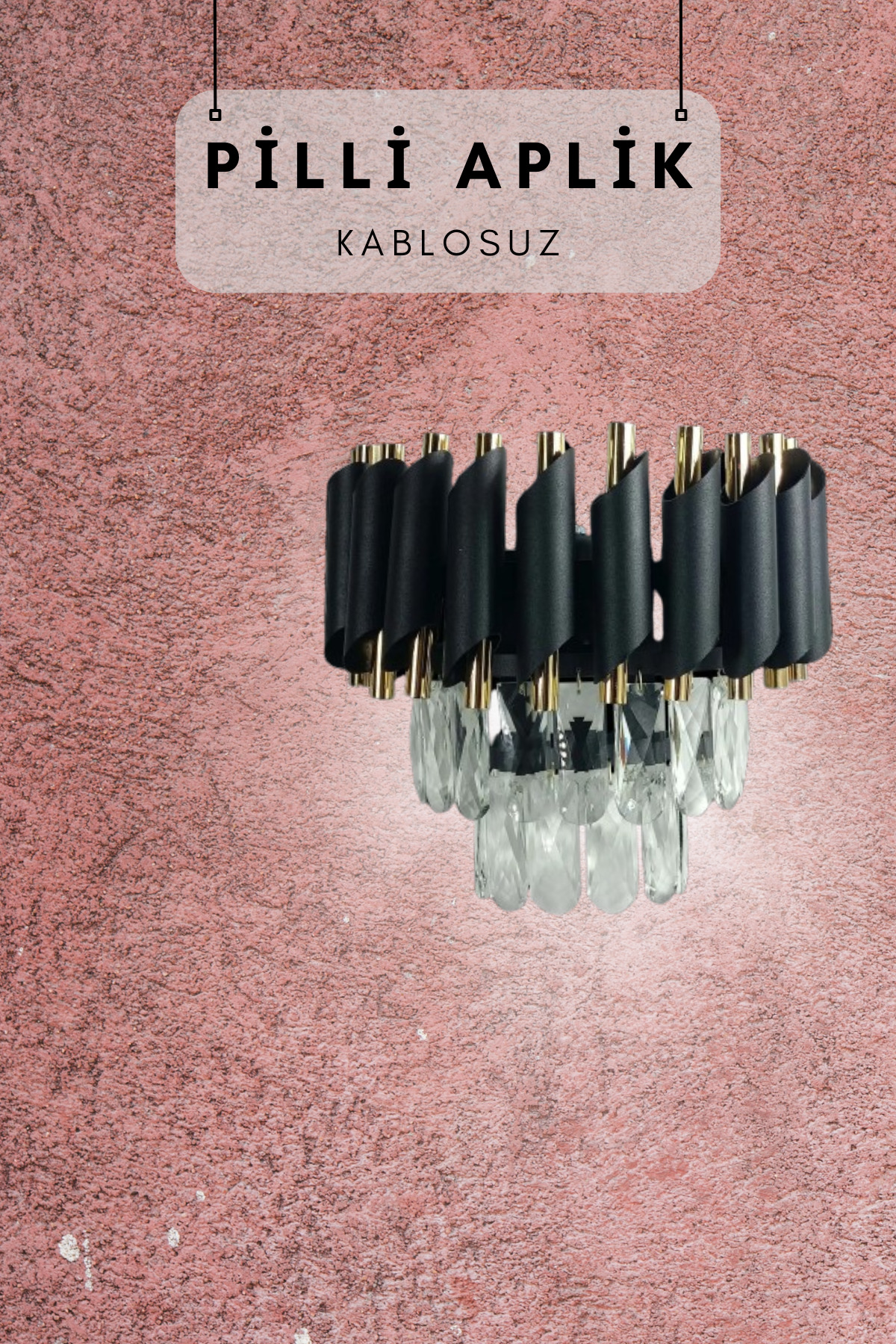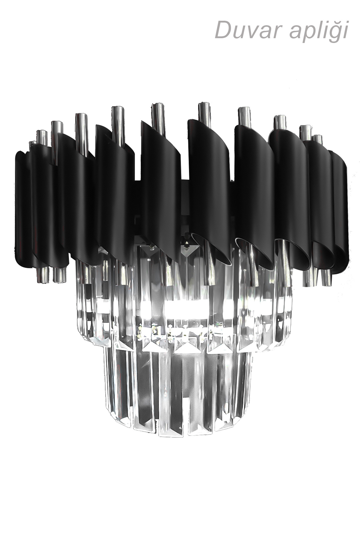 Palmira Duvar Apliği Kristal Tabut Taşlı Lüks Aplik - Siyah Krom Renk Palmira Duvar Apliği Kristal Tabut Taşlı Lüks Aplik - Siyah Krom Renk PT-800-APL-G تک سایز
