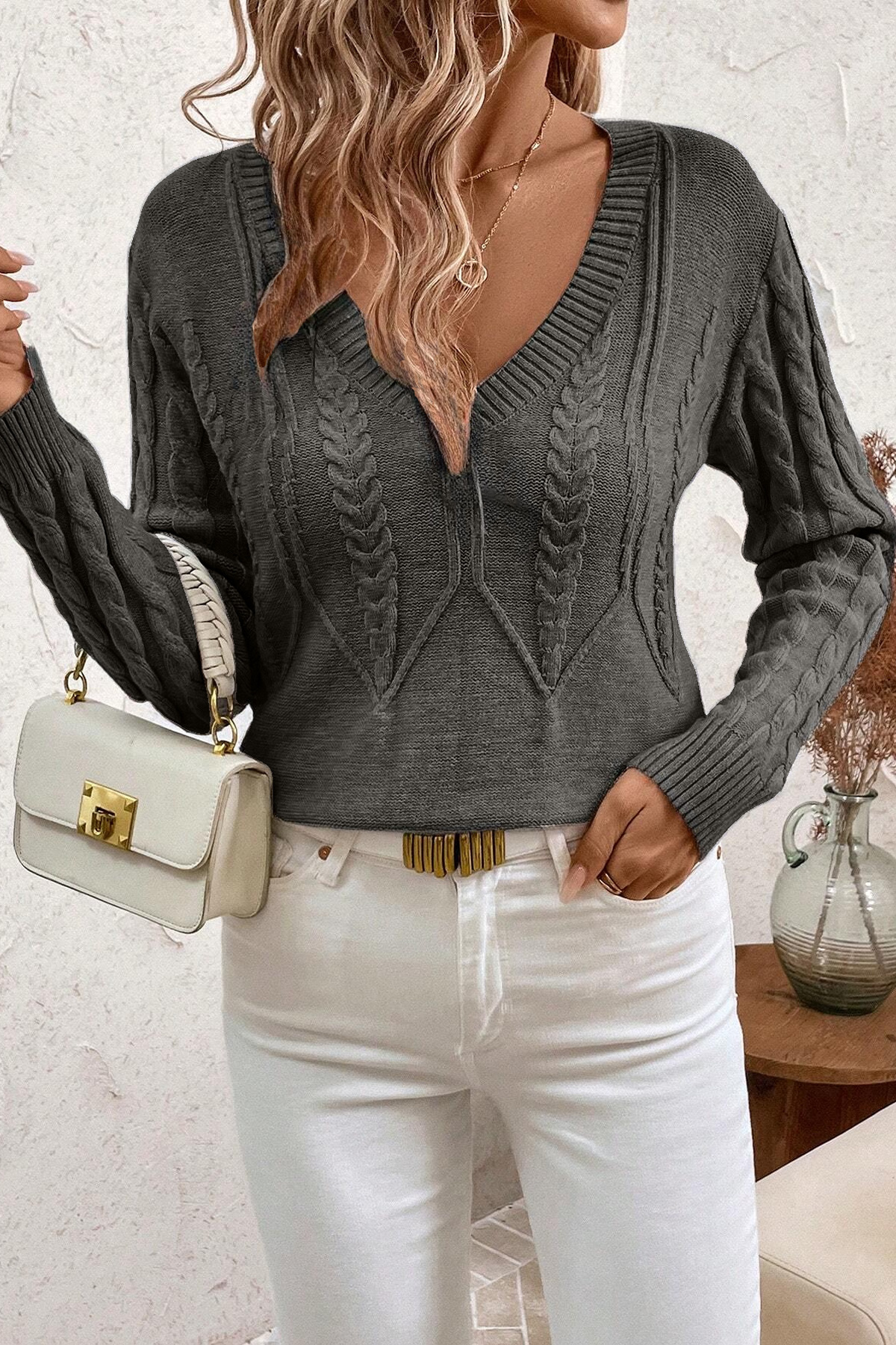 Kadın Saç Örgülü V Yaka Antrasit Triko Kazak Kadın Saç Örgülü V Yaka Antrasit Triko Kazak hnp-vykçan XL