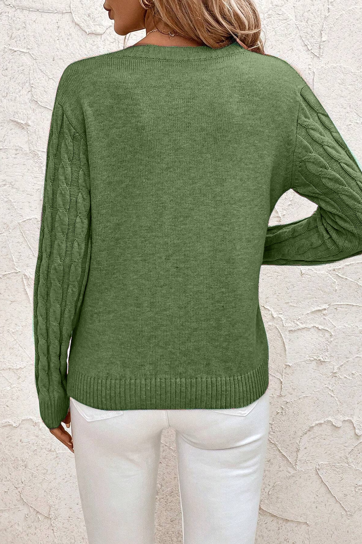 Kadın Saç Örgülü V Yaka Mint Triko Kazak Kadın Saç Örgülü V Yaka Mint Triko Kazak hnp-vykçan XL