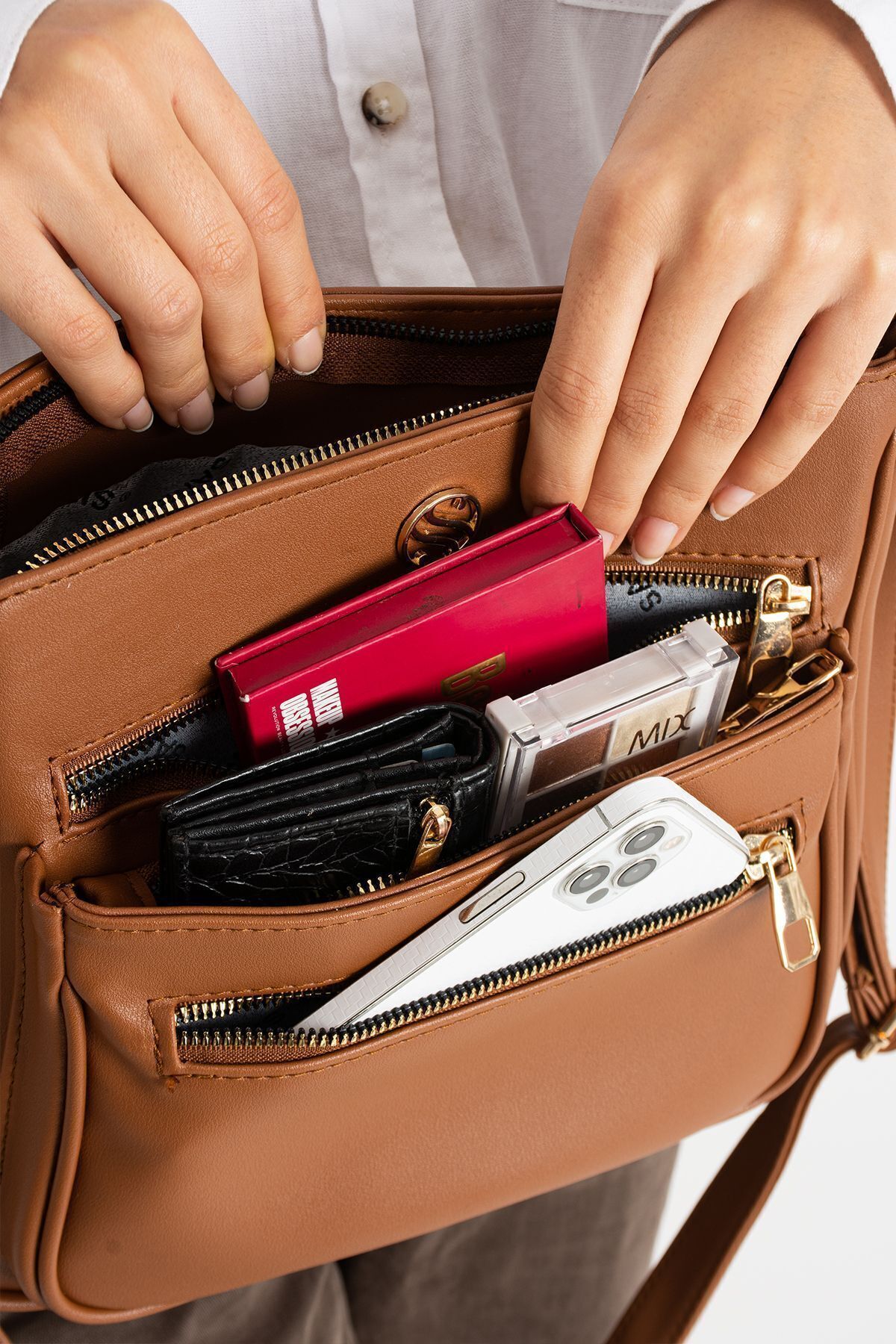 Kadın,ayarlanabilir Çapraz Askılı, Dört Cepli Taba Omuz Çantası Kadın,ayarlanabilir Çapraz Askılı, Dört Cepli Taba Omuz Çantası S-1399 Standart