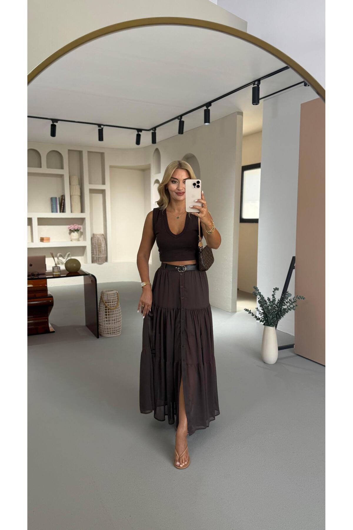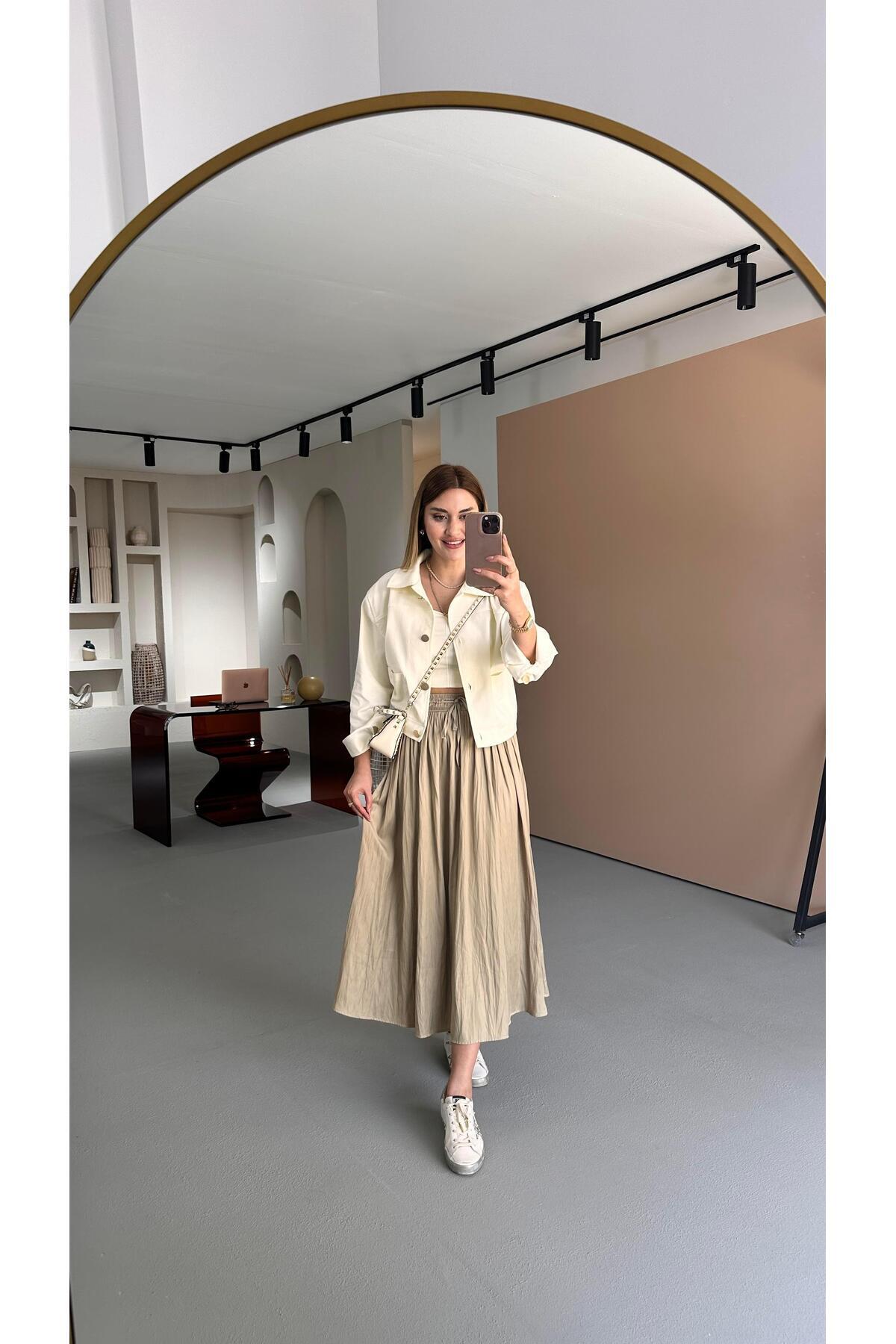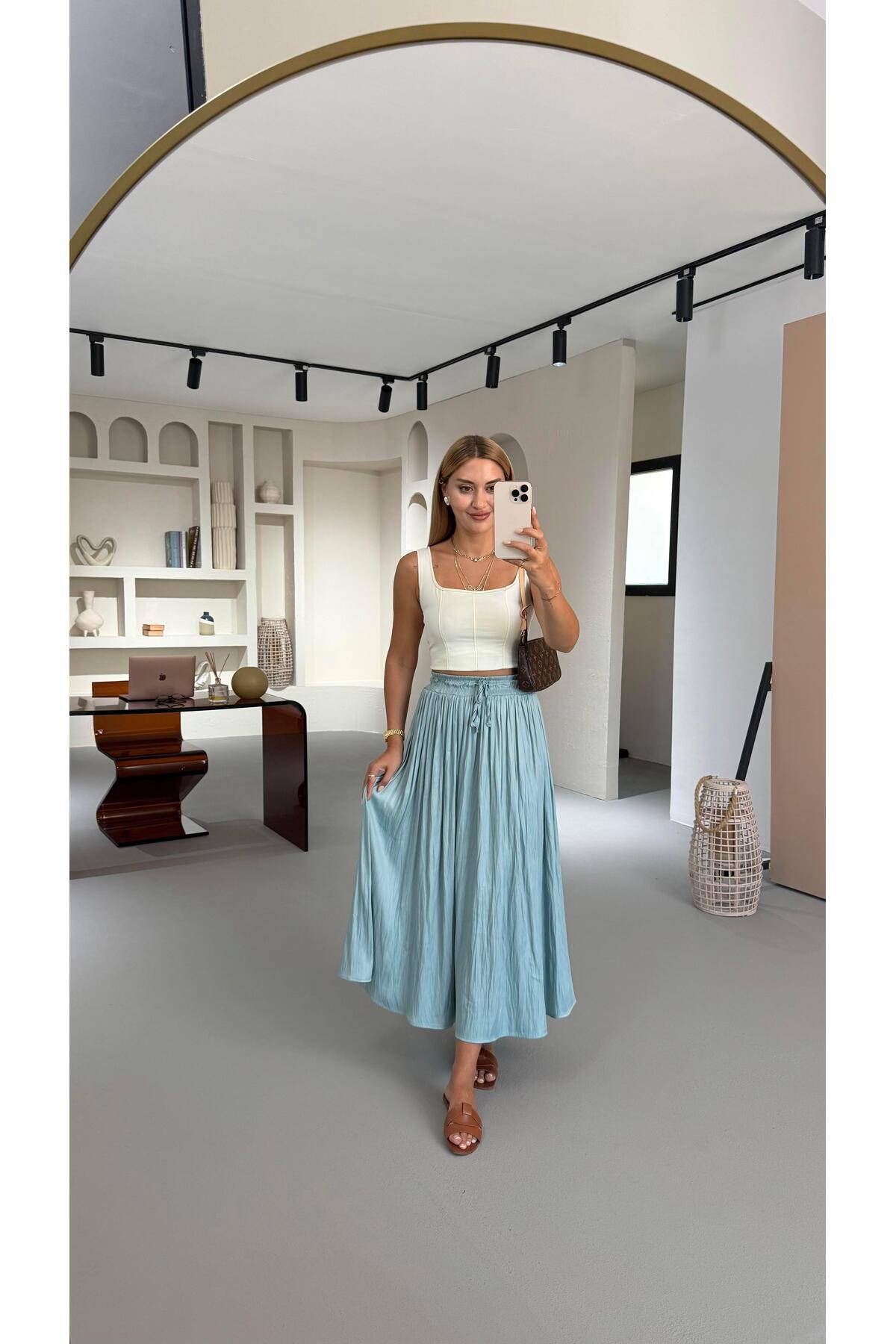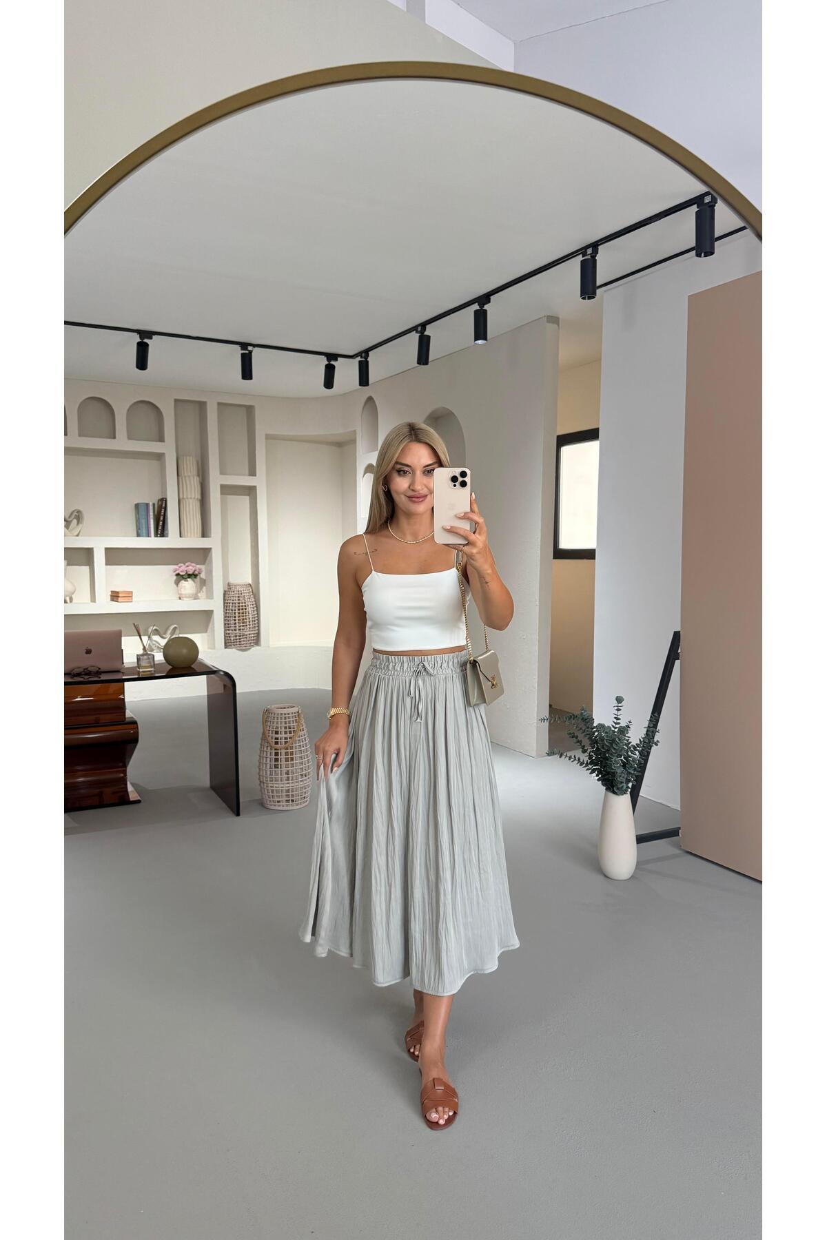 Bel Lastikli Kırışık Doku Saten Midi Mürdüm Etek Bel Lastikli Kırışık Doku Saten Midi Mürdüm Etek ETK-0229-MRD L