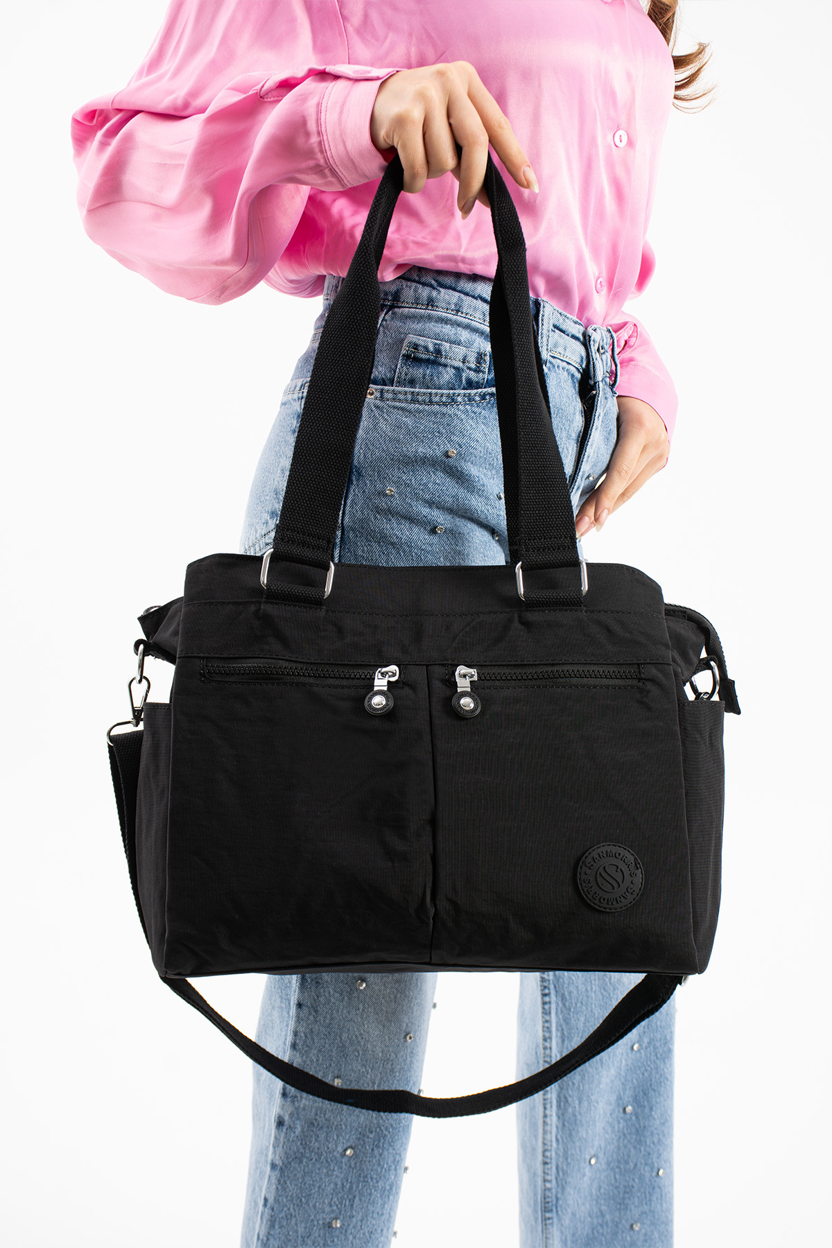 Kadın Büyük Boy Siyah Renkli Bölmeli Suya Dayanıklı Krinkıl Kumaş Çapraz Ve Omuz Askılı Çanta Kadın Büyük Boy Siyah Renkli Bölmeli Suya Dayanıklı Krinkıl Kumaş Çapraz Ve Omuz Askılı Çanta S-3026 Standart