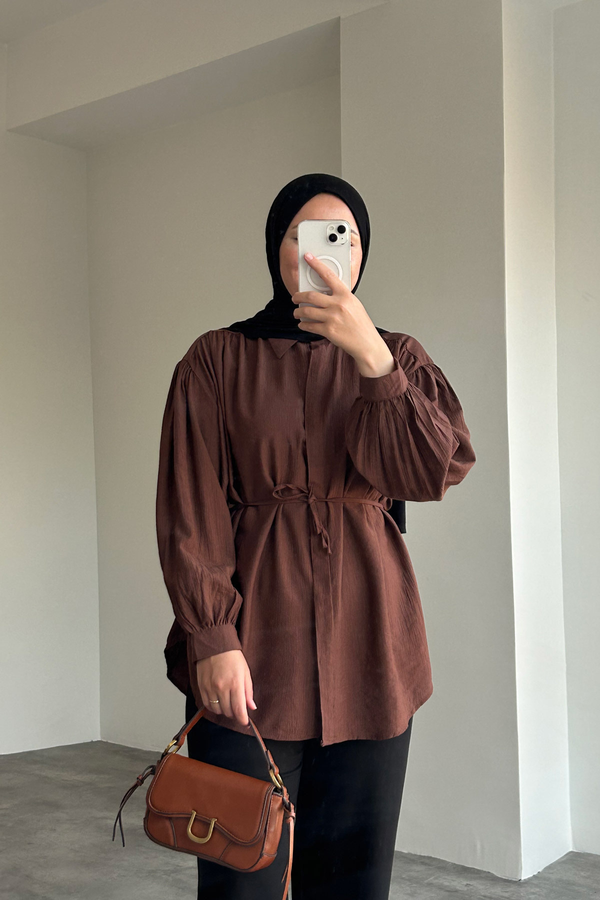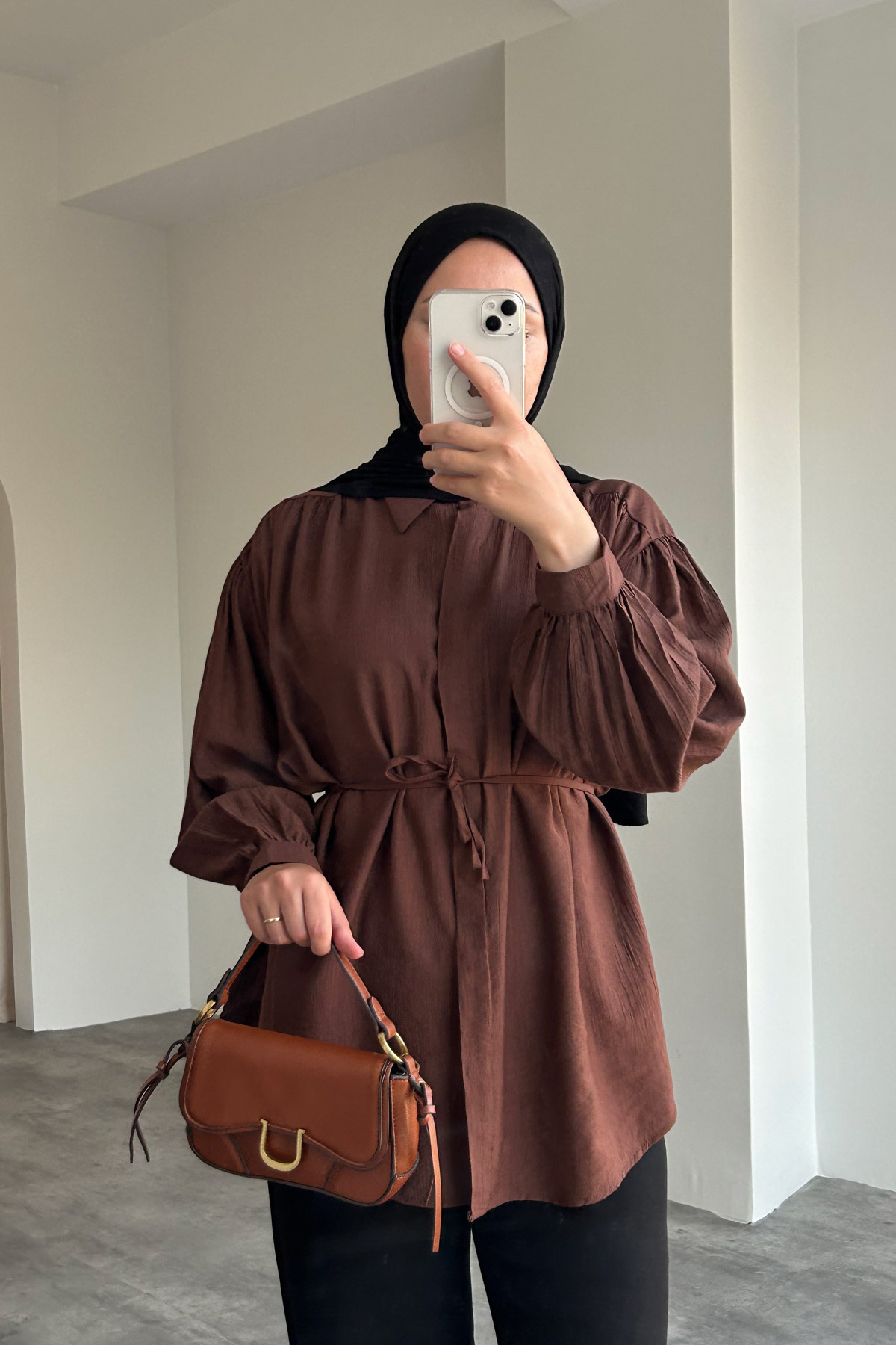 Kadın Belden Bağlamalı Vintage Gömlek Kadın Belden Bağlamalı Vintage Gömlek HYW25YK0203 Standart