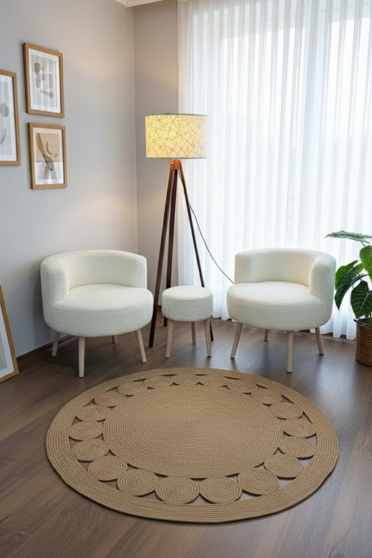 JÜT RV438 Elde Dokuma Doğal Jüt Hasır Halı JÜT RV438 Elde Dokuma Doğal Jüt Hasır Halı JUT-YUVARLAK 200 x 200