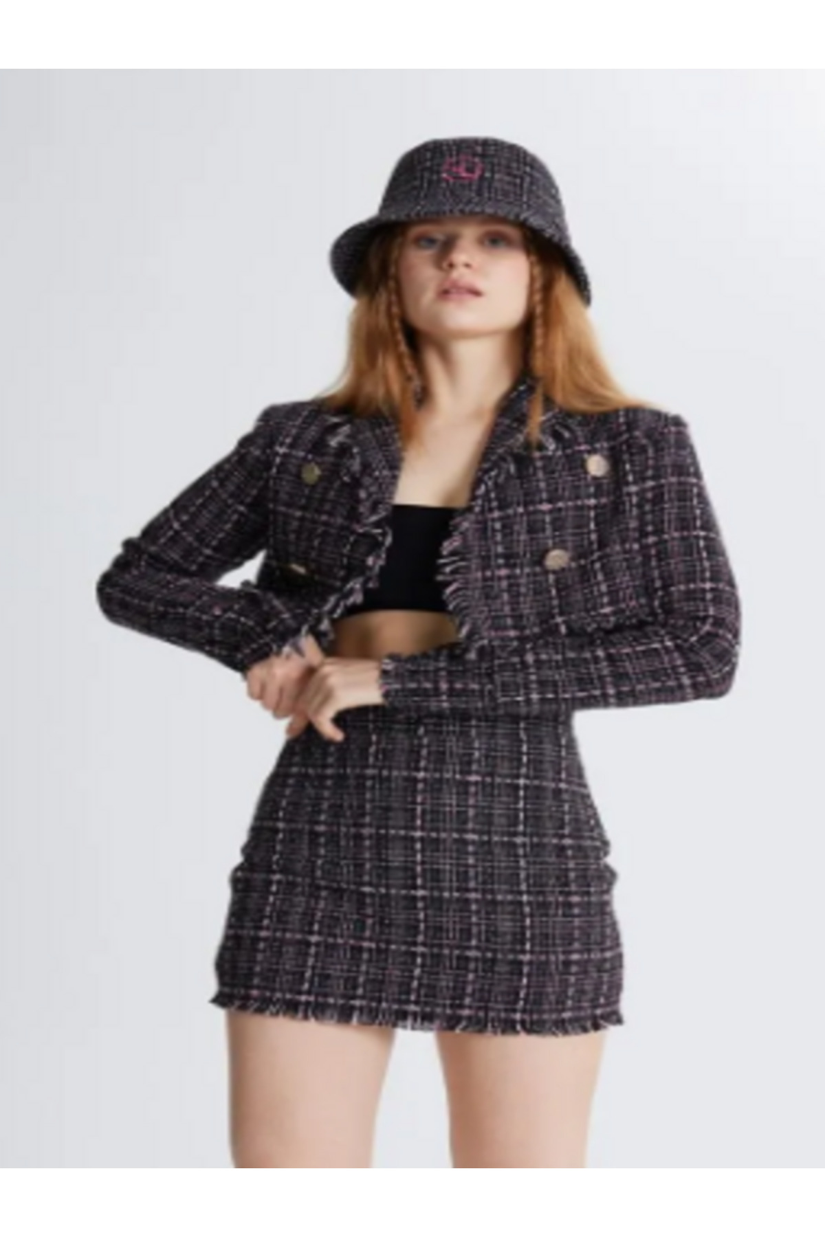 Tüvit Kumaş Mini Tweed Etek Siyah Tüvit Kumaş Mini Tweed Etek Siyah v1 L