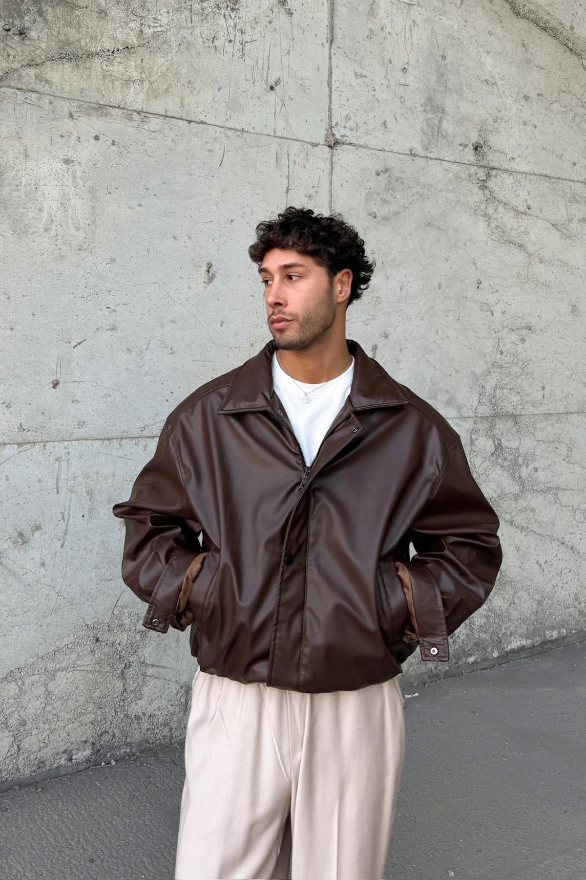 Oversize Vintage Erkek Acı Kahve Deri Ceket Oversize Vintage Erkek Acı Kahve Deri Ceket fyzover-11 2XL