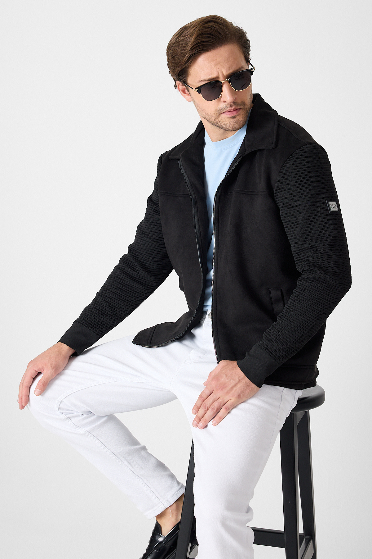 ERKEK REGULAR FİT YAKALI FERMUARLI ASTARLI KOL ÖRME NUBUK CEKET/MONT ERKEK REGULAR FİT YAKALI FERMUARLI ASTARLI KOL ÖRME NUBUK CEKET/MONT NBC3 2XL
