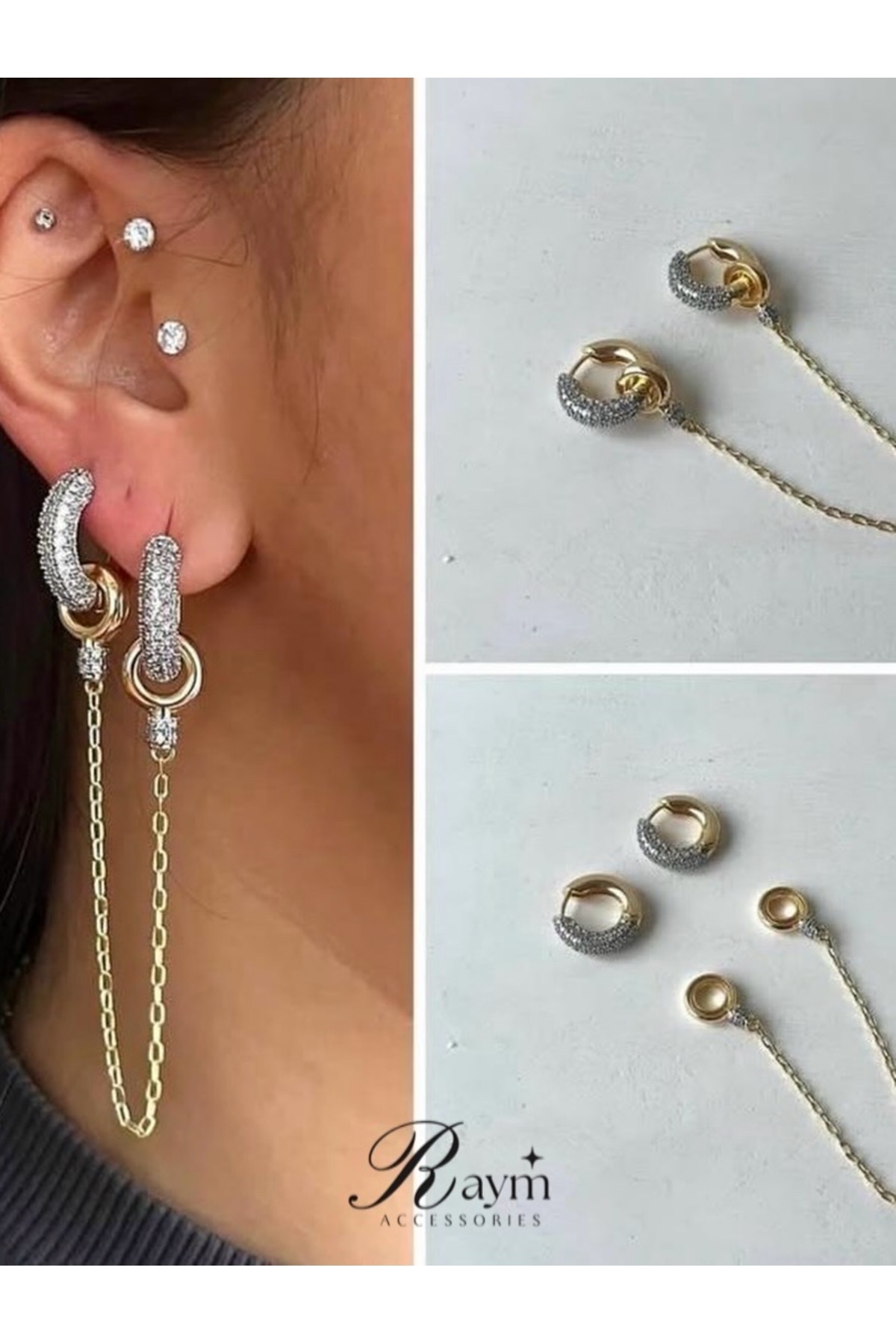 Halka ve Zincir Sallantılı Küpe Halka ve Zincir Sallantılı Küpe KP700106 تک سایز