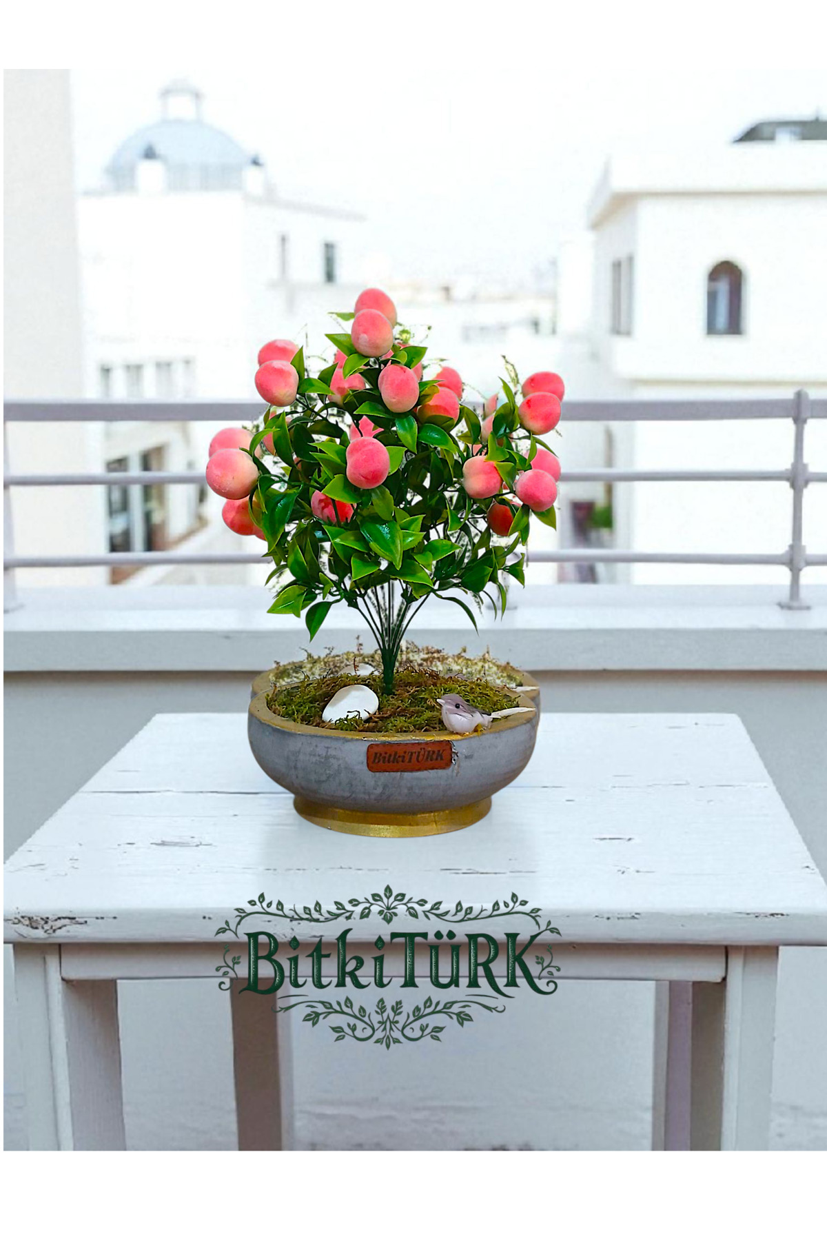 -Beton Saksıda Yapay Şeftali Ağacı Bonsai Cafe salon ofis hediye -Beton Saksıda Yapay Şeftali Ağacı Bonsai Cafe salon ofis hediye BitkiTÜRKbsy تک سایز