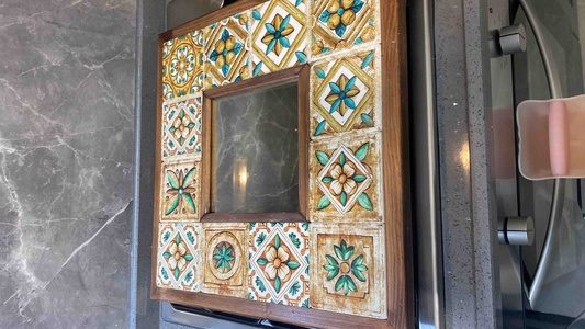 Masif Ahşap Çerçeveli Mozaik Taş (mermer) Ayna Seramik Eskitme Banyo Konsol Dresuar Balkon Aynası Masif Ahşap Çerçeveli Mozaik Taş (mermer) Ayna Seramik Eskitme Banyo Konsol Dresuar Balkon Aynası AYN-10x10--066 70 x 110