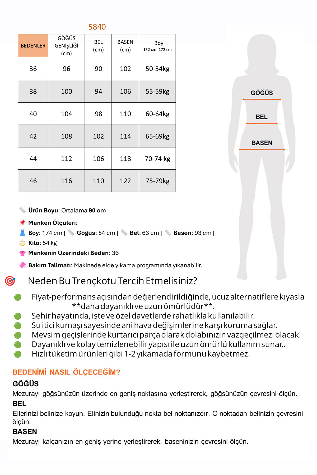 Su Itici Özellikli Kırışmaz Kumaş Trençkot A.Bej 5840 Su Itici Özellikli Kırışmaz Kumaş Trençkot A.Bej 5840 20245840 44