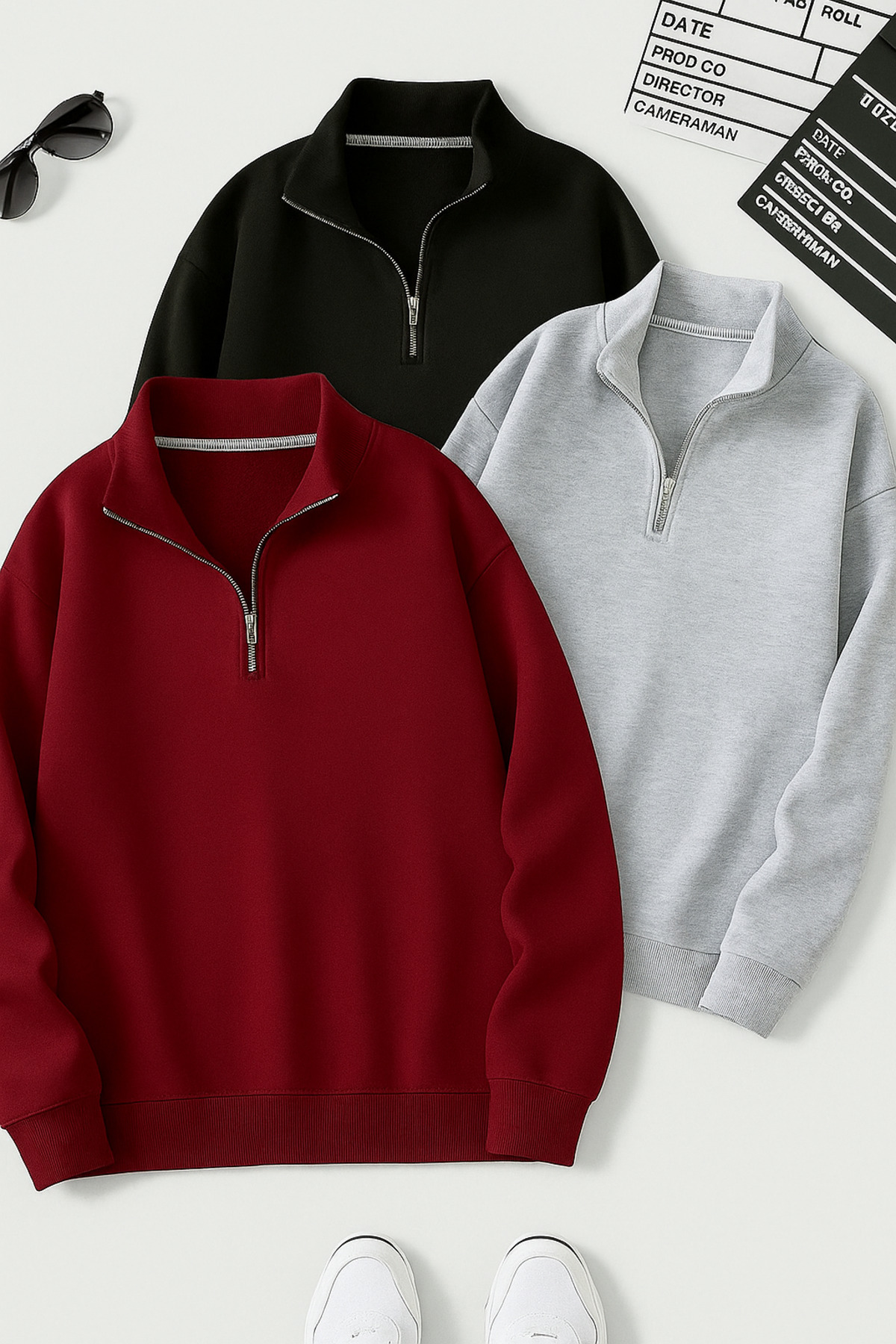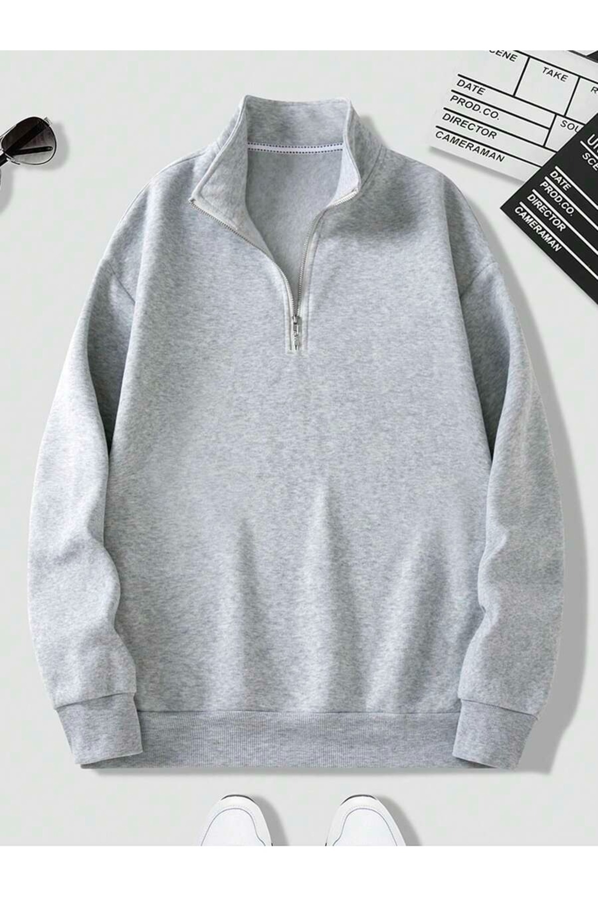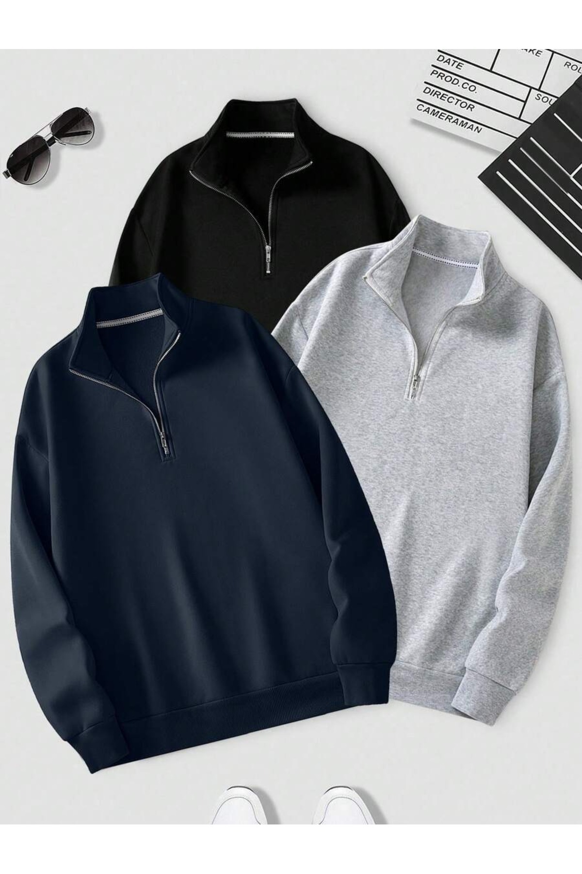 Düz Baskısız Yarım Fermuarlı Dik Yakalı Kazak Düz Baskısız Yarım Fermuarlı Dik Yakalı Kazak JST-DüzBaskısızDikYaka XL
