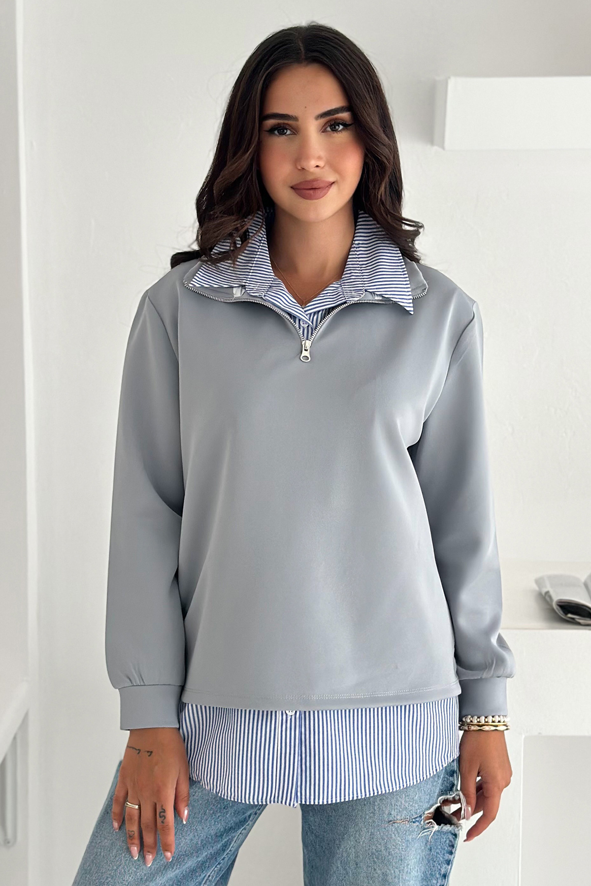 Fermuarlı Oversize Sweatshirt & Gömlek – Katmanlı Şehir Stili Fermuarlı Oversize Sweatshirt & Gömlek – Katmanlı Şehir Stili 2172-gomlekswt M/L