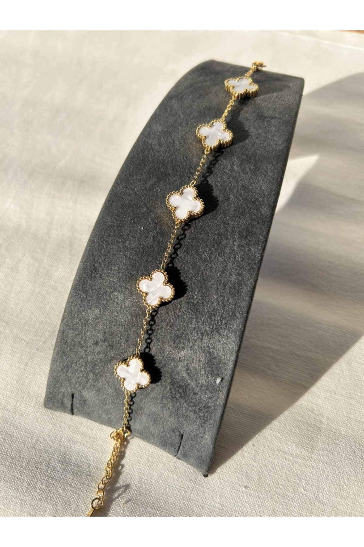 Gold Çelik Yonca Model Beyaz Taş Bileklik Gold Çelik Yonca Model Beyaz Taş Bileklik DETA2508-YB01 18 cm