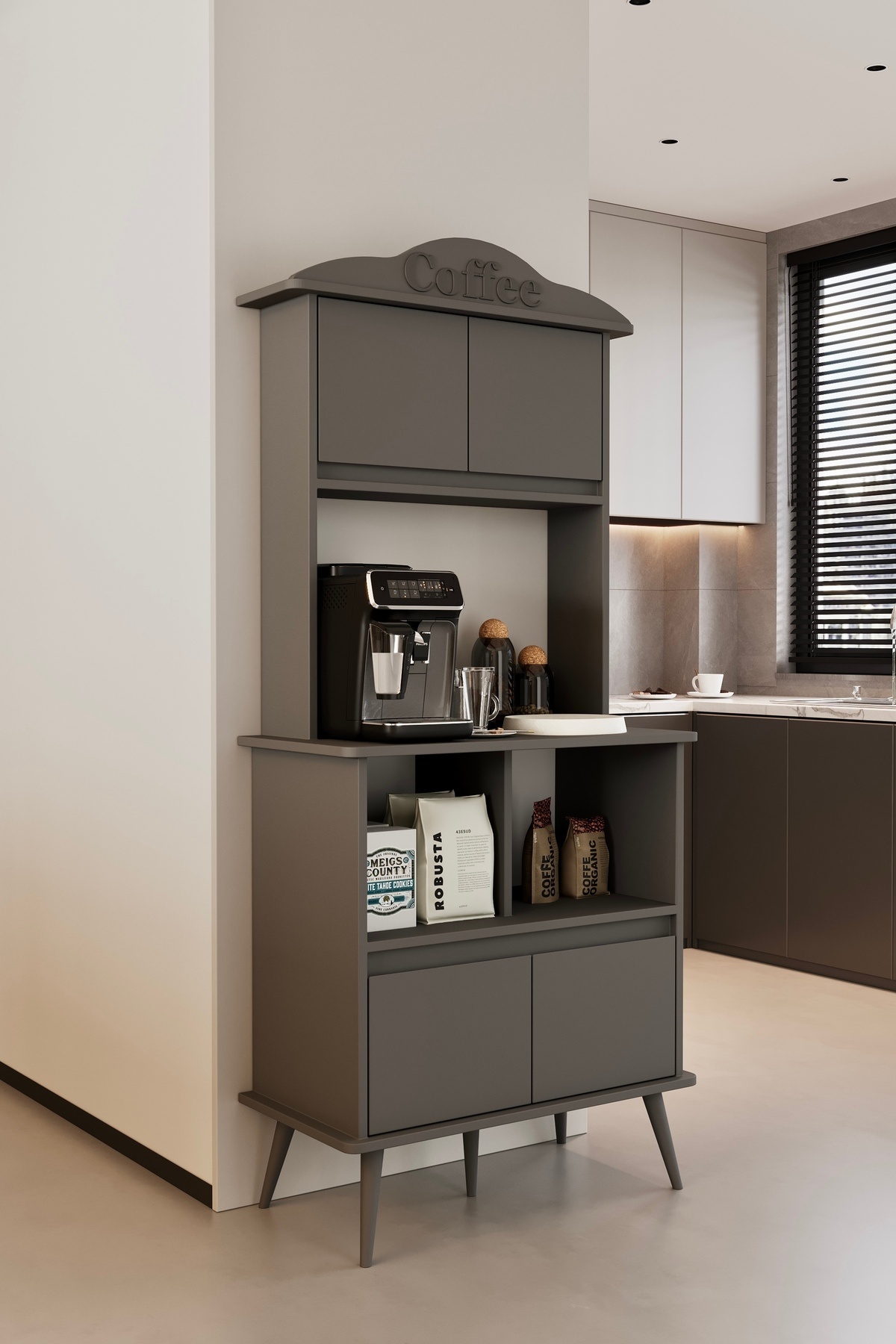 Forme MDF gri raflı kahve köşesi 172 cm Forme MDF gri raflı kahve köşesi 172 cm frm0001 تک سایز