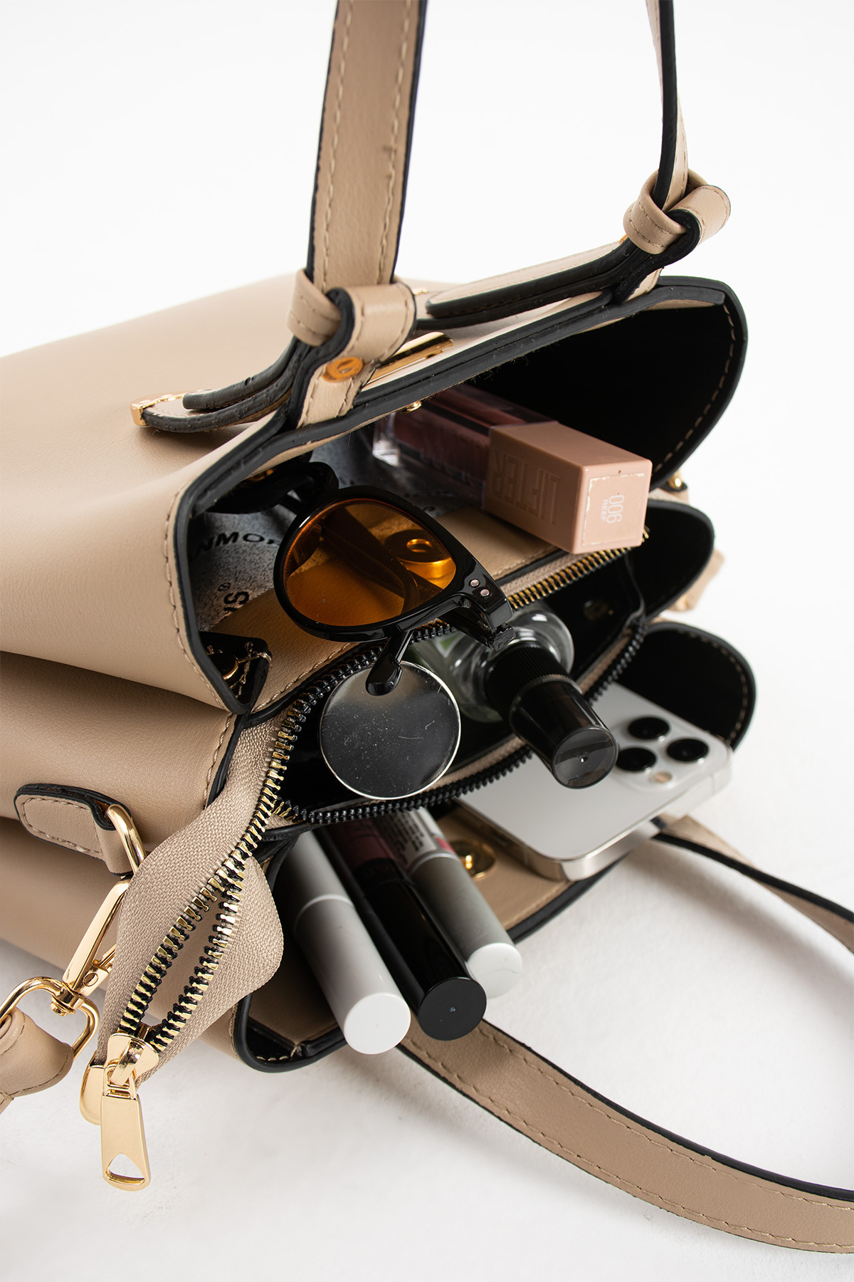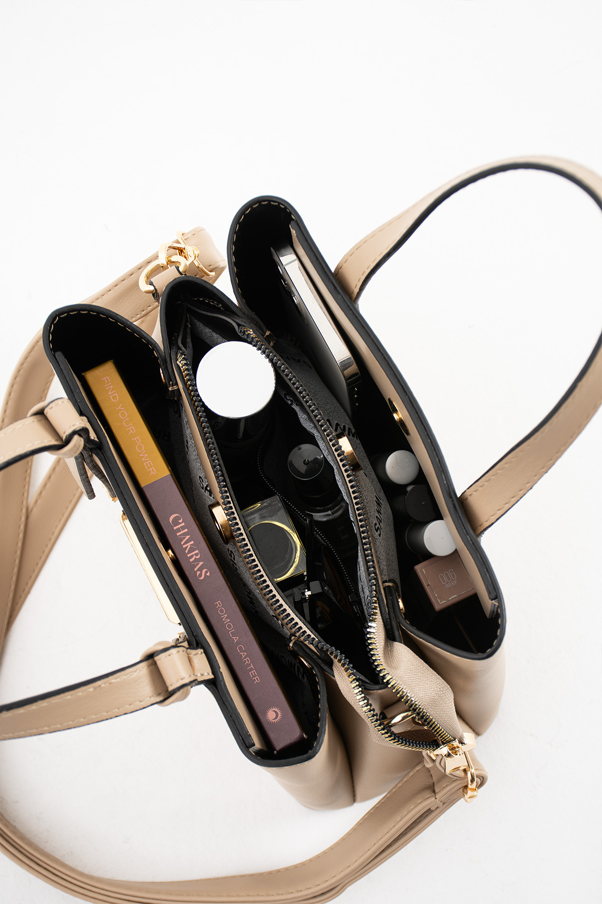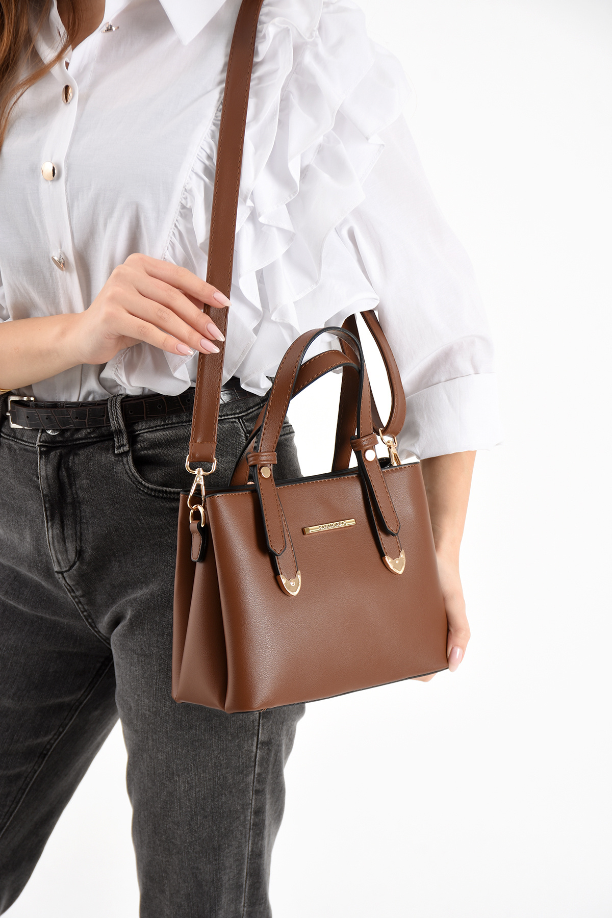 Kadın Uzun Askılı 4 Bölmeli Gold Aksesuarlı Taba Omuz Ve El Çantası Kadın Uzun Askılı 4 Bölmeli Gold Aksesuarlı Taba Omuz Ve El Çantası S-1425 تک سایز