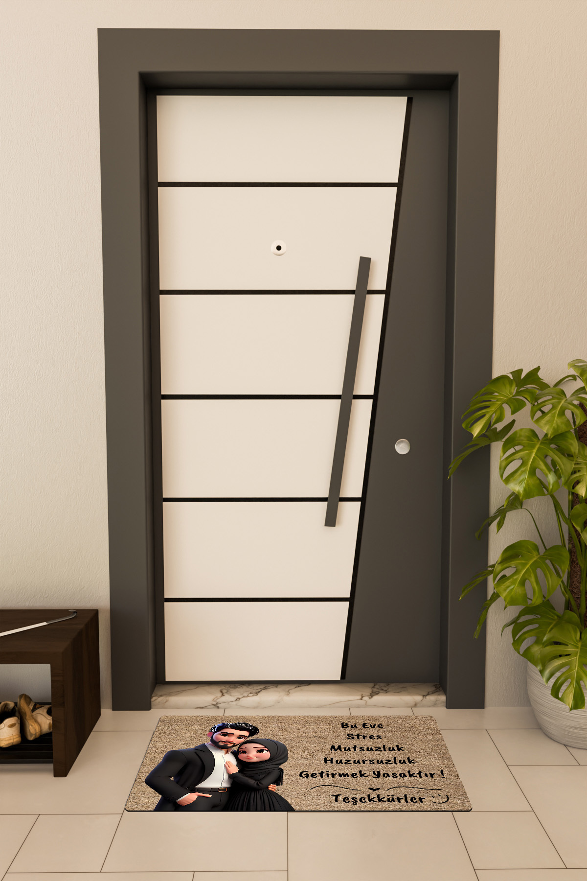 Yüksek Kaliteli Dijital Baskı Kahverengi, Siyah Türbanlı Çift, Bu eve temalı Kapı Önü Paspası Yüksek Kaliteli Dijital Baskı Kahverengi, Siyah Türbanlı Çift, Bu eve temalı Kapı Önü Paspası D8269 70 x 45