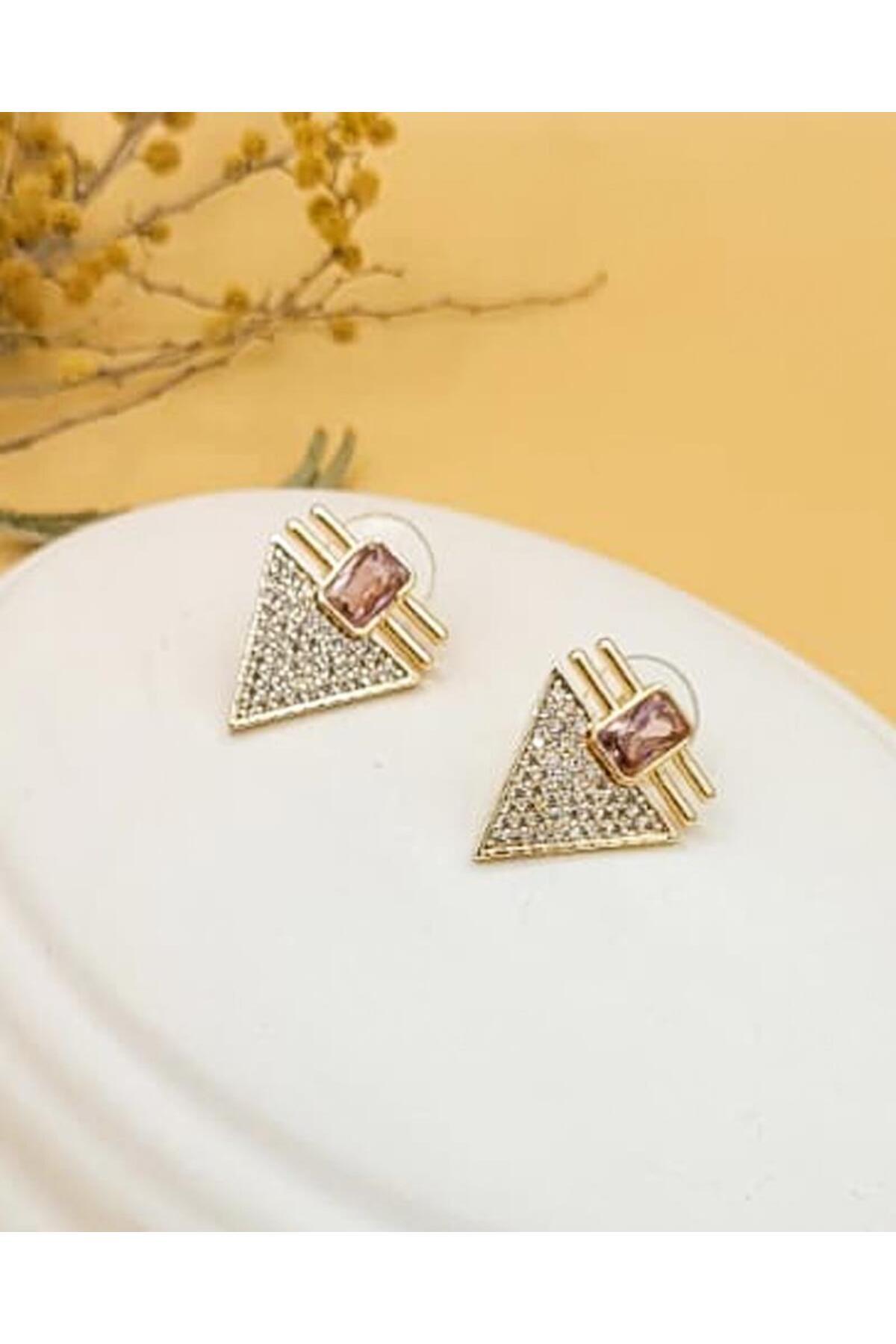 Pembe Taşlı Üçgen Marka Küpe Pembe Taşlı Üçgen Marka Küpe NV2258 تک سایز