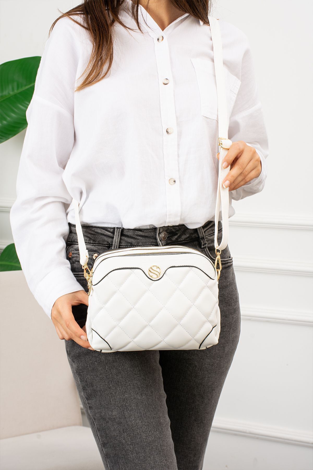 Kadın Ayarlanabilir Çapraz Askılı 4 Bölmeli Beyaz Omuz Ve Çapraz Çanta Kadın Ayarlanabilir Çapraz Askılı 4 Bölmeli Beyaz Omuz Ve Çapraz Çanta S-1267 تک سایز