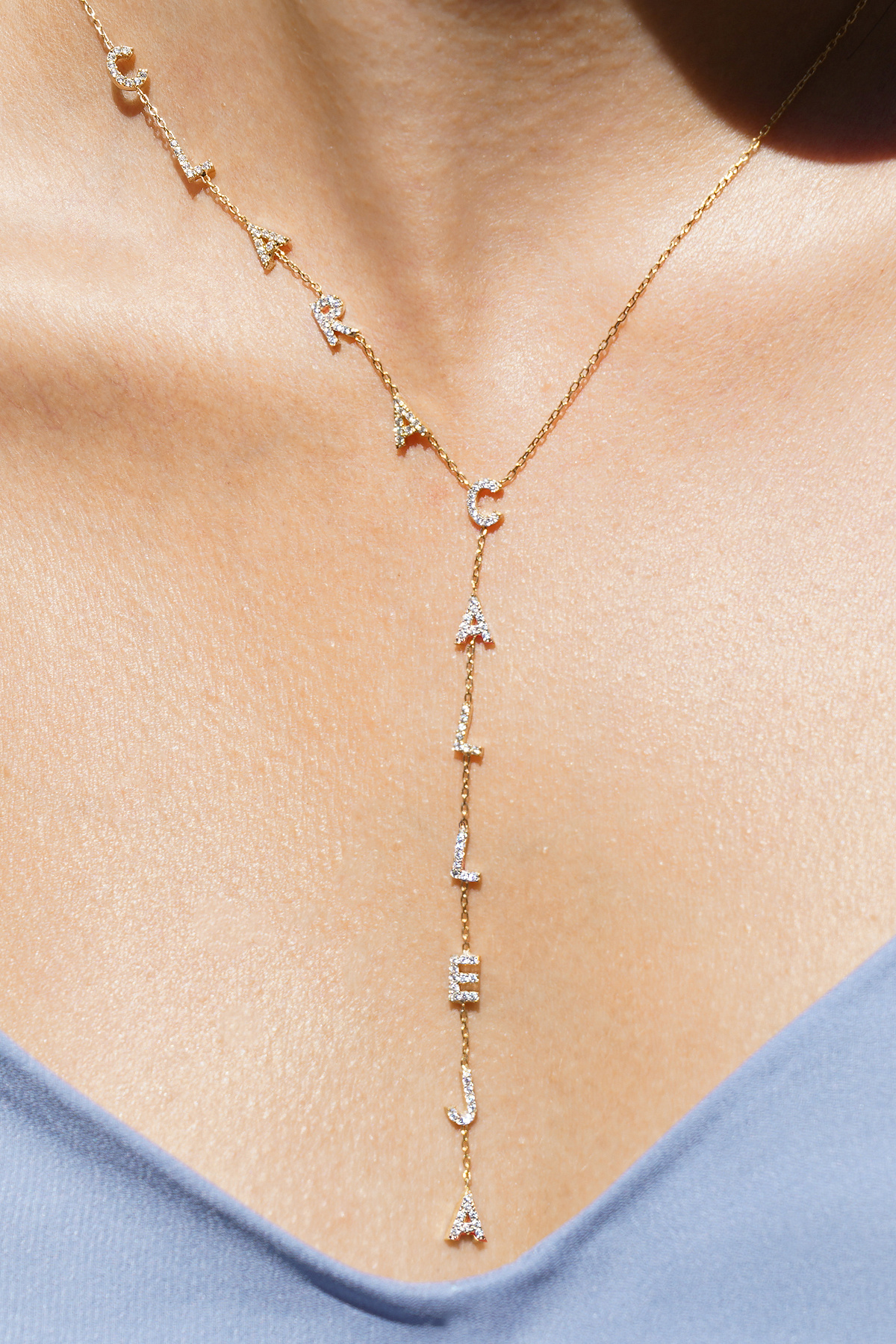 14 Ayar Altın Kaplama Kişiye Özel Kravat&Y Formunda Taşlı İsim Gümüş Kolye - CNS00650 14 Ayar Altın Kaplama Kişiye Özel Kravat&Y Formunda Taşlı İsim Gümüş Kolye - CNS00650 45 cm