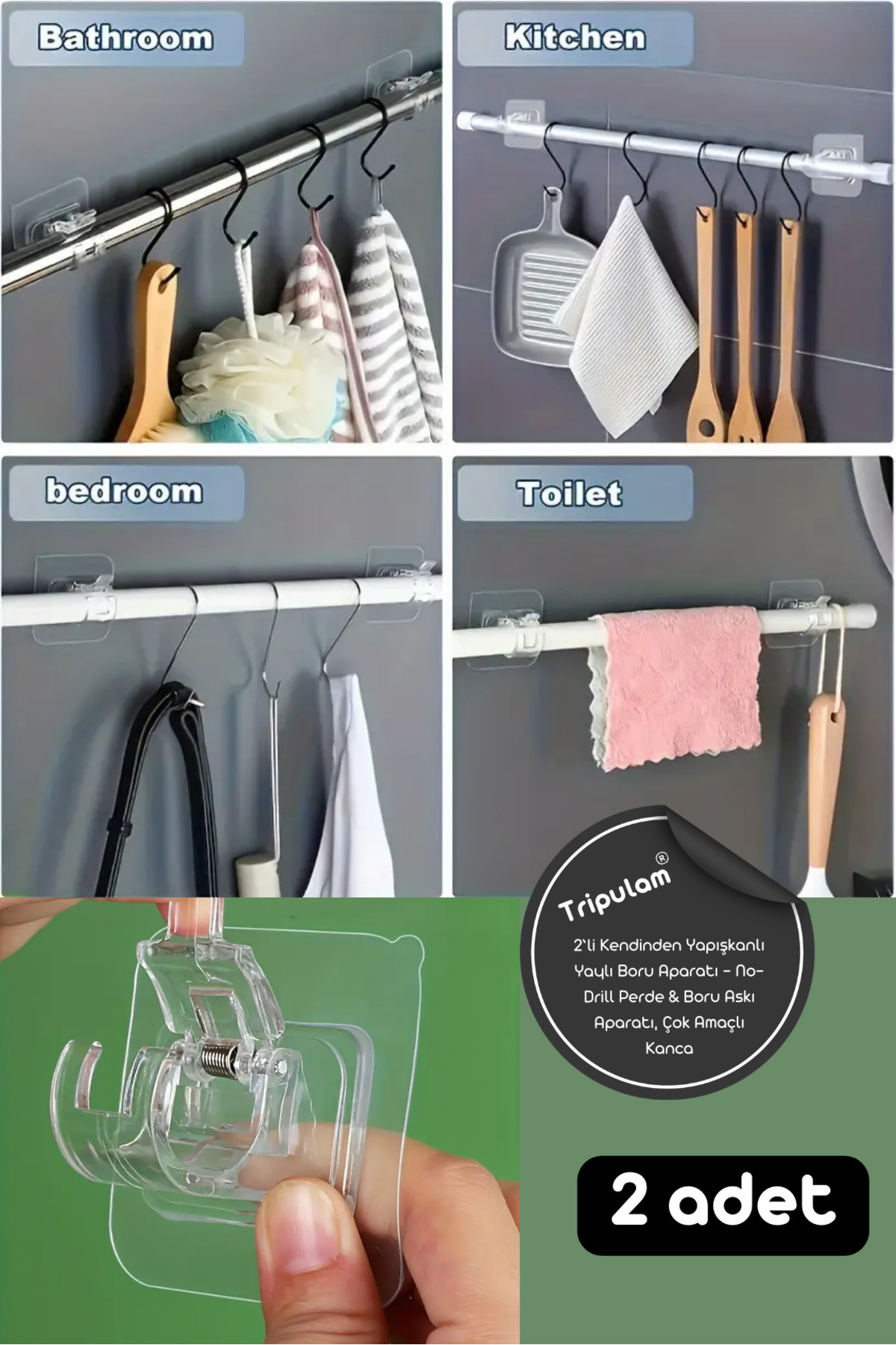 2 adet Kendinden Yapışkanlı Yaylı Boru Aparatı - No-Drill Perde Çubuk Askı Aparatı, Çok Amaçlı Kanca 2 adet Kendinden Yapışkanlı Yaylı Boru Aparatı - No-Drill Perde Çubuk Askı Aparatı, Çok Amaçlı Kanca TRIP000000132 تک سایز