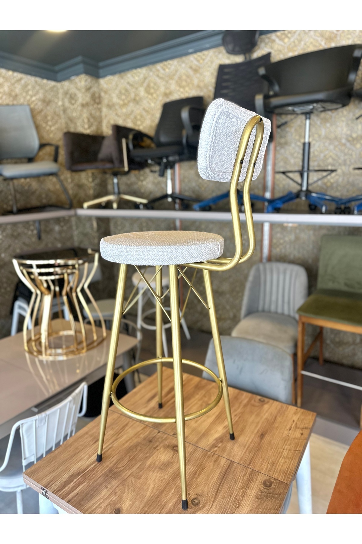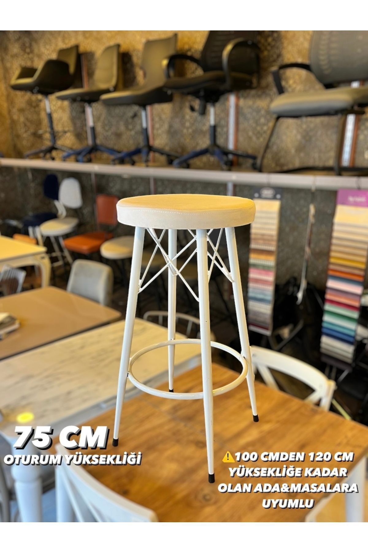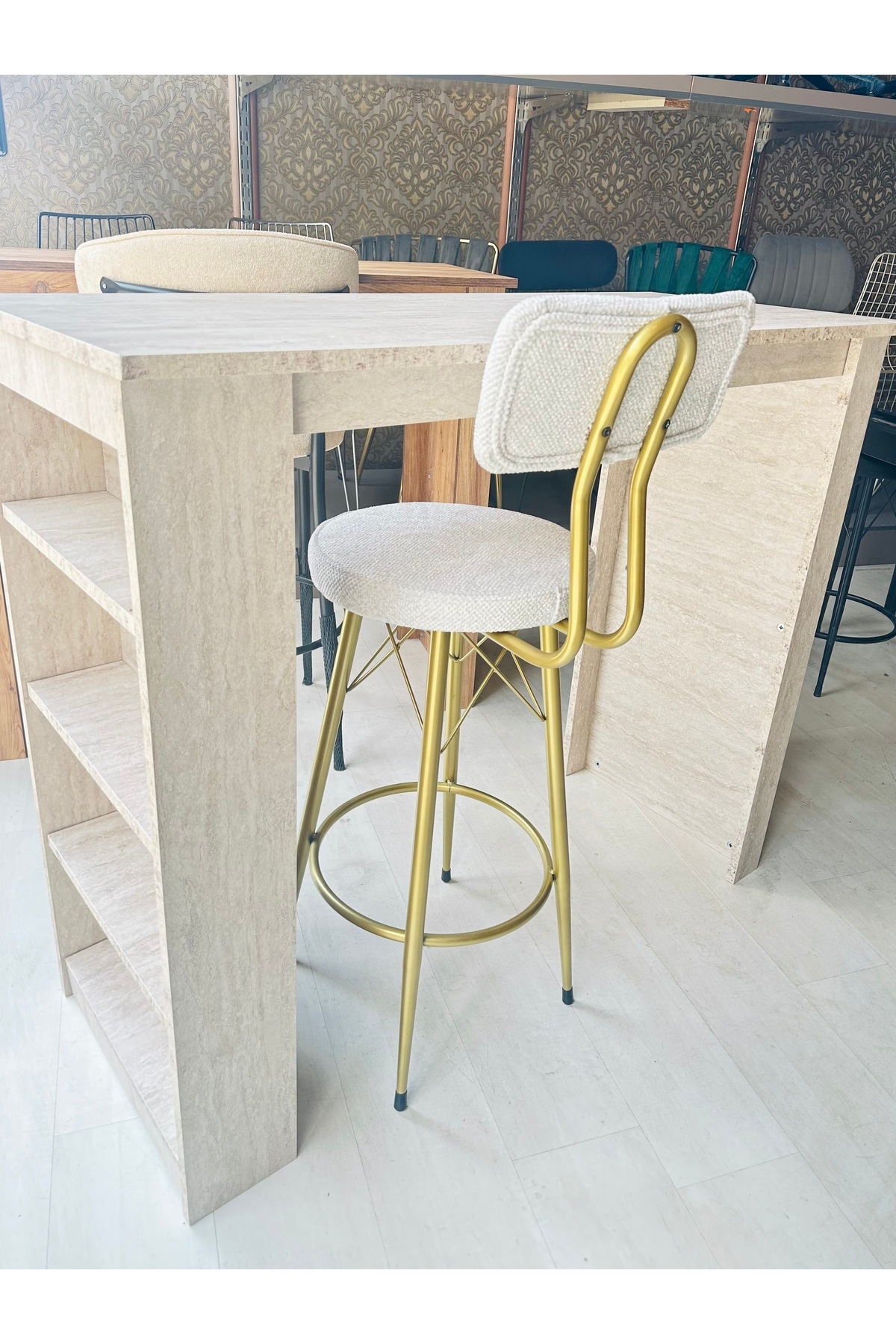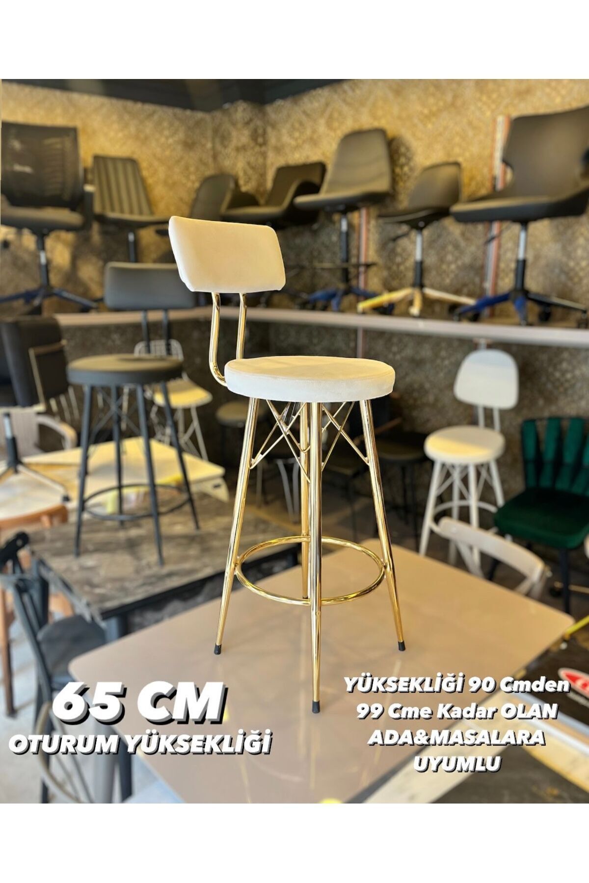 Yeni Teddy Kumaş Mila Bar Sandalyesi Mat(Eskitme)Gold Kırık Beyaz Yeni Teddy Kumaş Mila Bar Sandalyesi Mat(Eskitme)Gold Kırık Beyaz Tedeskitme تک سایز